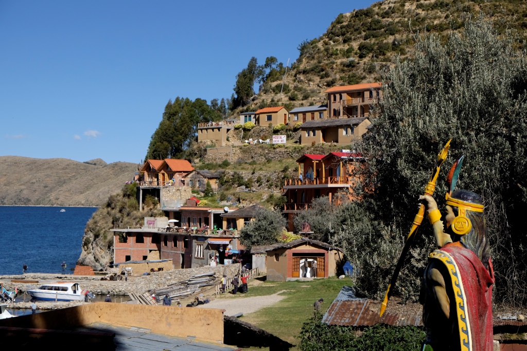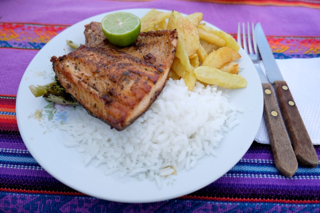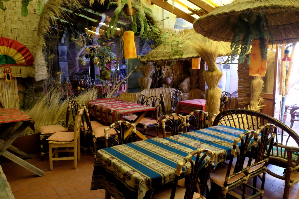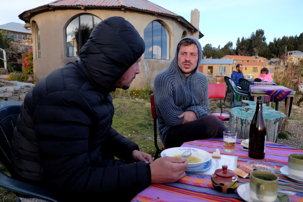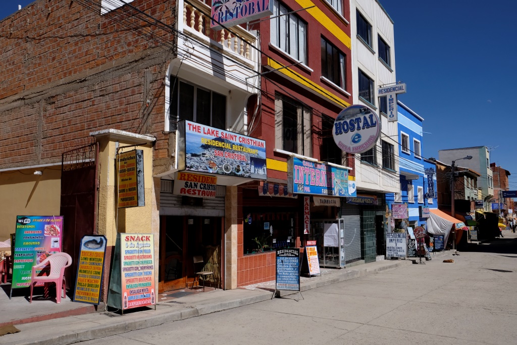 Nolieku somu un eju apskatīt ciematu. Esmu uzraususies teju līdz pašam kalna galam, atlicis pakāpties tikai pavisam nedaudz, kad esmu tūristu takas vidū – šeit uz katra stūra ir pa hostelim vai restorānam. Joka pēc pabāžu galvu vienā no naktsmītnēm, lai pārbaudītu cenu līmeni. Palikšana šeit maksā 80 boliviano, ok. Izstaigājusi apkaimi, piesēžu, manuprāt, restorānā ar smukāko skatu un pasūtu vakariņas.