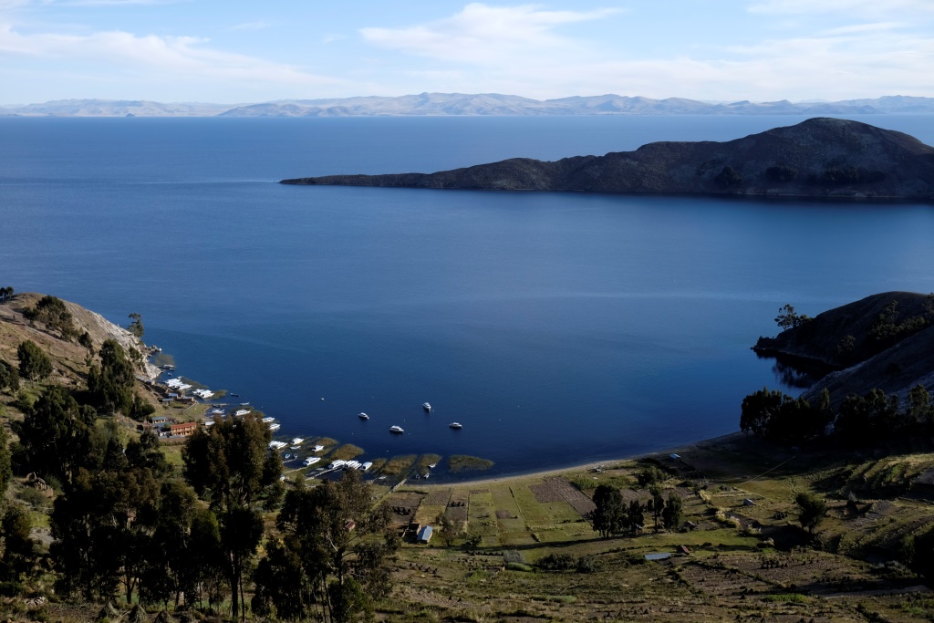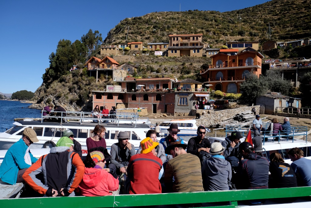 Pēc brokastīm savācu no hosteļa bagāžas glabātuves savu somu un dodos gaidīt laivu uz Isla del Sol (Saules salu), man priekšā jau dirn krietns ārzemnieku pulciņš. Man acīs iekrīt divi jaunieši, kas malko alu. Gandrīz gribas pieiet šiem klāt un pateikt: „s utra nje vipil, djenj propal”. Liktenim labpatīkas, ka tieši ar šiem puišiem un vēl pāris citiem ļaužiem tiekam uzstellēti uz laivas jumta, pārējie pasažieri brauc iekštelpā. Tā nu gribot negribot iepazīstos ar Paulu no Itālijas un Tibo no…. Jaunkaledonijas. Esmu jau radusi visiem sniegt ģeogrāfijas lekcijas par to, kur atrodas Latvija, bet šoreiz lekcija nepieciešama man. Jaunkaledonija ir Francijai piederoša salu grupa Klusajā okeānā, tālāk lasiet: http://lv.wikipedia.org/wiki/Jaunkaledonija.