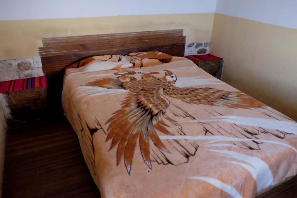 Brīdī, kad mani spēki ir galā, arī mēs paši esam galā. Tā ir ģimenes māja, kurai blakus tiek izīrēti divi mazi namiņi. Smalkākais, ar trim gultām, maksā 50 boliviano, nedaudz mazāks ar laulības gultu – 35. Paldies, man pietiks ar mazāko. Zēns arī apvaicājas, vai man nebūtu pretim norēķināties jau tagad, samaksāju viņam prasītos 35 un domāju, vai vēlāk nepārradīsies vecāki un mani neizmetīs no šejienes. Tad jau redzēs.