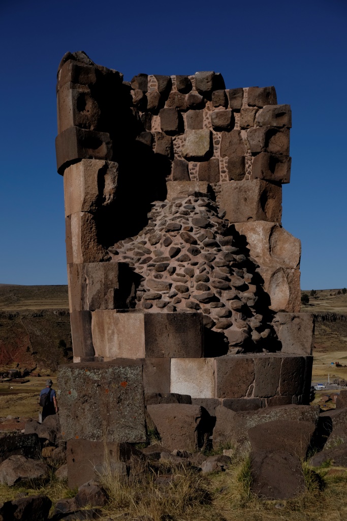 Pēc vietējo objektu apskates savācu no viesnīcas lielo somu, kāpju mikriņā un dodos uz Puno. Šodien divos esmu sarunājusi ekskursiju uz Sillustani drupām. Šajā seno apbedījumu vietā apskatāmi milzu torņi jeb čulpas – no horizontāliem akmeņiem veidotās būves pieder pirmsinku laikam, bet gludiem akmens blokiem veidotās ir inku darinājums. Tā kā torņos apbedītās mūmijas tika bagātīgi apveltītas ar dārglietām, tad vairums torņu tika izlaupīti – nozagtas gan dārglietas, gan pašas mūmijas. Vienīgi trīs mūmijas palikušas tepat, tagad tās pārvietotas uz Puno muzeju.