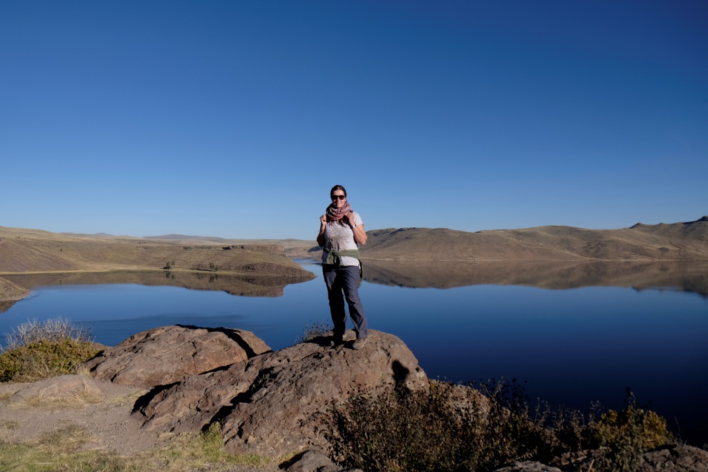 Auglības templis gan nav neko liels – akmeņu sētā uzstādīti objekti, kas atgādina ko nu kuram – daži elementi ir debesīs vērsti, citi zemē. Vietu aplūko arī amerikāņu kundzīte ar peruāņu gidu, es atļaujos izmantot situāciju un lūdzu gidam īsumā pastāstīt par šo vietu. Viņš ir ļoti runīgs un stāsta labprāt. Populārākā versija par šo vietu ir – Auglības templis, kurā senāk sievietes ieradušās kopā ar šamaņiem, šeit veikti rituāli un ziedošana Pačamammai, lai risinātu auglības jautājumus. Cita stāsta versija ir par to, ka kādreiz šī vieta bijusi ļoti nabadzīga un kādam zemniekam ienācis prātā izveidot šo vietu un radīt leģendu par Auglības templi, lai piesaistītu vietai apmeklētājus un veicinātu apkaimes ekonomisko izaugsmi. Vēl citiem redzamie objekti saistās tikai ar sēnēm, vēl citiem ar stabiņiem, pie kuriem ērti piesiet lopus. „Versiju ir daudz, izvēlies savējo, kam ticēt”, gids smejas. Šo dienu veltu Lienai Muraškinai – pastkartīte ir ceļā! Paldies, paldies!