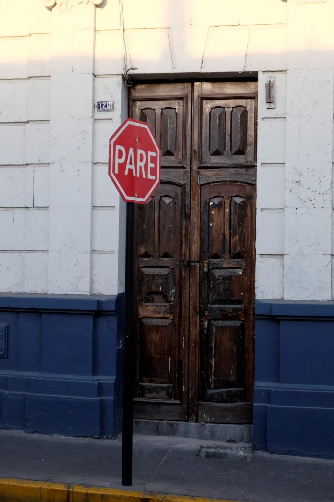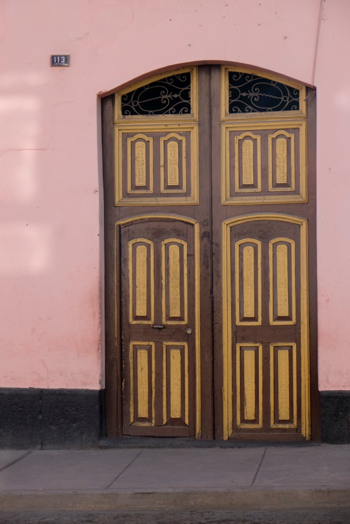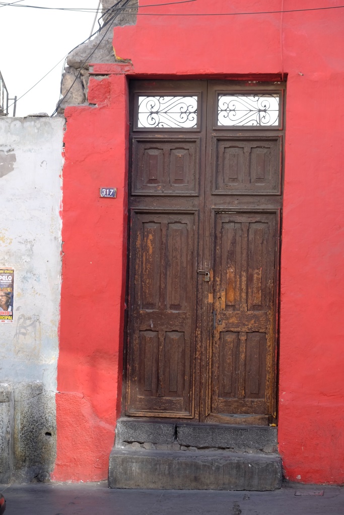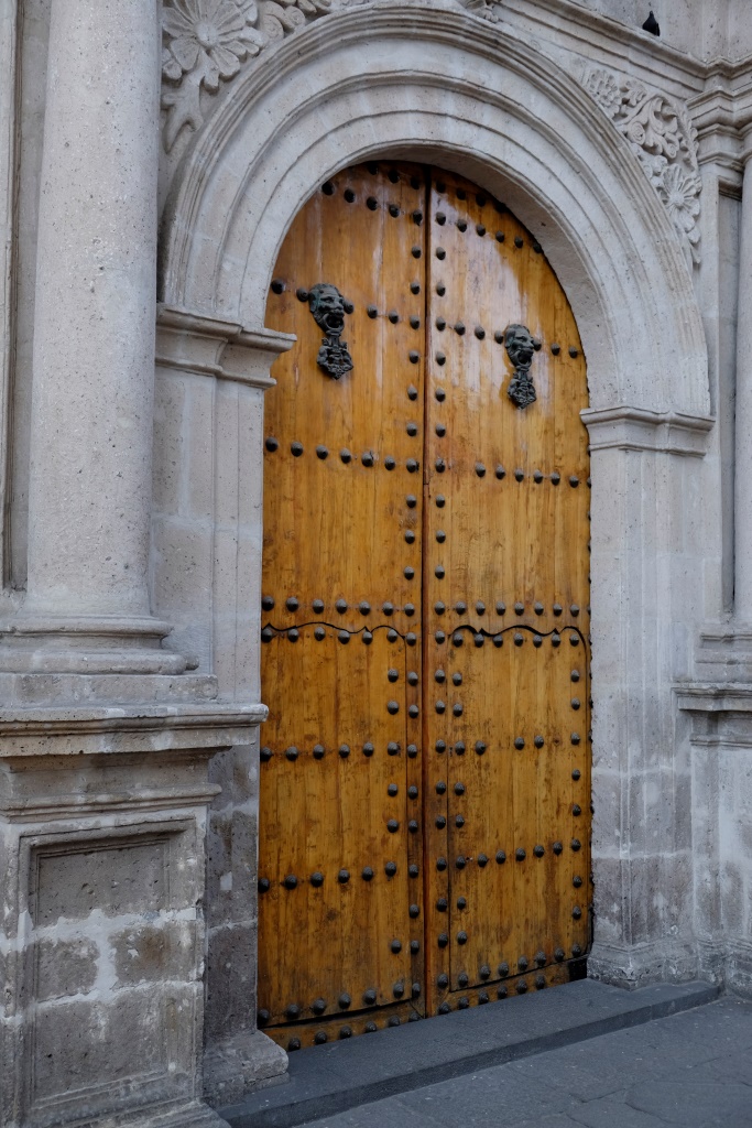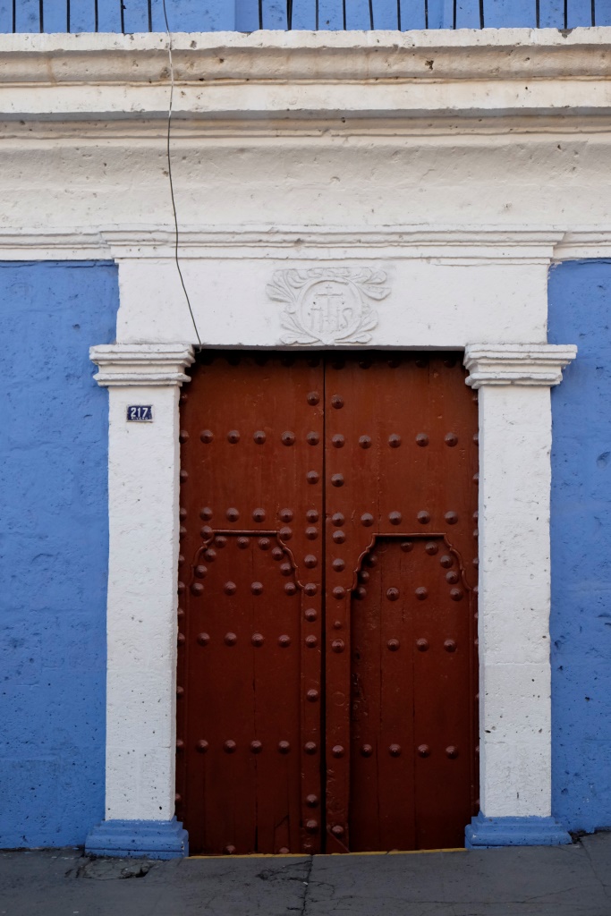 „Kas aiz tām atrodas, zina tikai burvis”, teju visu dienu dungoju šo dziesmu, staigājot pa Arekipu un bildējot durvis. Kāpēc gan es tā darīju? Arekipu biju jau apskatījusi iepriekšējā viesošanās reizē pirms aptuveni pusgada un šodienu nolēmu pamēģināt fokusēties tikai uz atsevišķām detaļām – durvīm, logiem, vārtiem. Šādu pasūtījumu, kopā ar dāsnu atbalstu, saņēmu no lasītājas Gunas Jomas. Pasūtījums gan bija ik pa laikam nobildēt kādu no šiem elementiem (un to es arī turpināšu darīt), bet man šķita interesanti pamēģināt vienu dienu paskatīties uz pilsētu no detaļu viedokļa. Visvairāk uzmanību pievērsu durvīm – baznīcu greznajām un nomales ēku šķībajām. Un, ziniet ko – es pavadīju ļoti interesantu dienu. Pamēģiniet pastaigāt pa Rīgu vai citu vietu, kur jūs atrodaties, un atkārtot „uzdevumu”, domāju arī jūs ieraudzīsiet daudz jauna. Tas, pirmkārt. Un paldies.