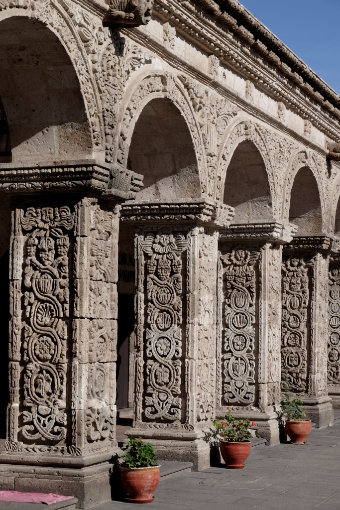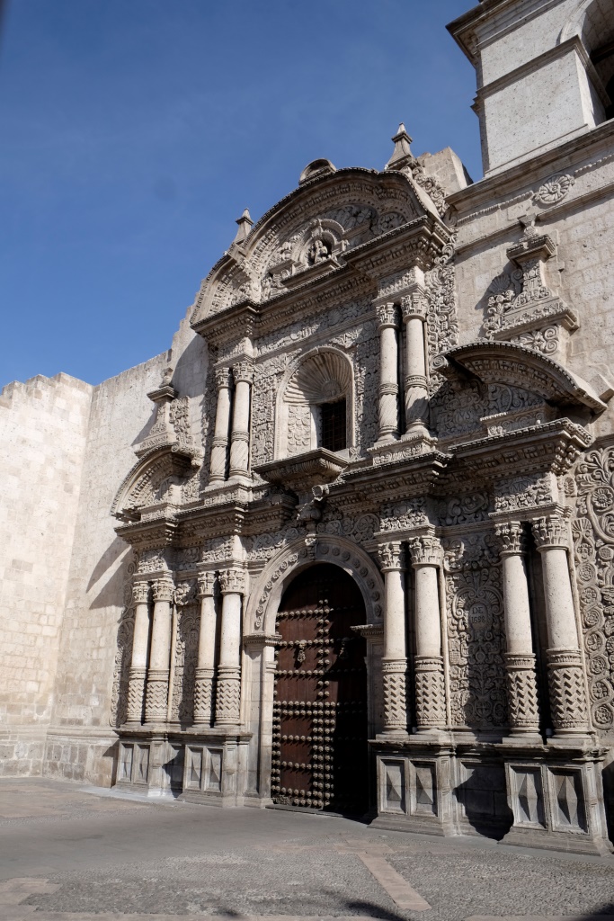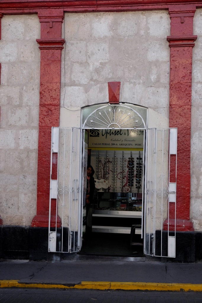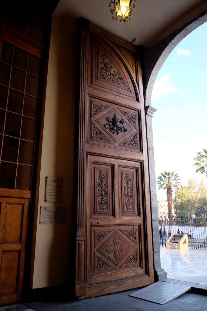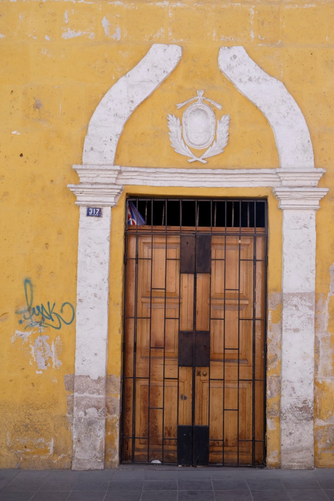„Kas aiz tām atrodas, zina tikai burvis”, teju visu dienu dungoju šo dziesmu, staigājot pa Arekipu un bildējot durvis. Kāpēc gan es tā darīju? Arekipu biju jau apskatījusi iepriekšējā viesošanās reizē pirms aptuveni pusgada un šodienu nolēmu pamēģināt fokusēties tikai uz atsevišķām detaļām – durvīm, logiem, vārtiem. Šādu pasūtījumu, kopā ar dāsnu atbalstu, saņēmu no lasītājas Gunas Jomas. Pasūtījums gan bija ik pa laikam nobildēt kādu no šiem elementiem (un to es arī turpināšu darīt), bet man šķita interesanti pamēģināt vienu dienu paskatīties uz pilsētu no detaļu viedokļa. Visvairāk uzmanību pievērsu durvīm – baznīcu greznajām un nomales ēku šķībajām. Un, ziniet ko – es pavadīju ļoti interesantu dienu. Pamēģiniet pastaigāt pa Rīgu vai citu vietu, kur jūs atrodaties, un atkārtot „uzdevumu”, domāju arī jūs ieraudzīsiet daudz jauna. Tas, pirmkārt. Un paldies.