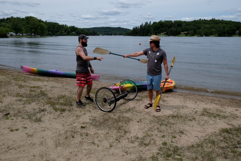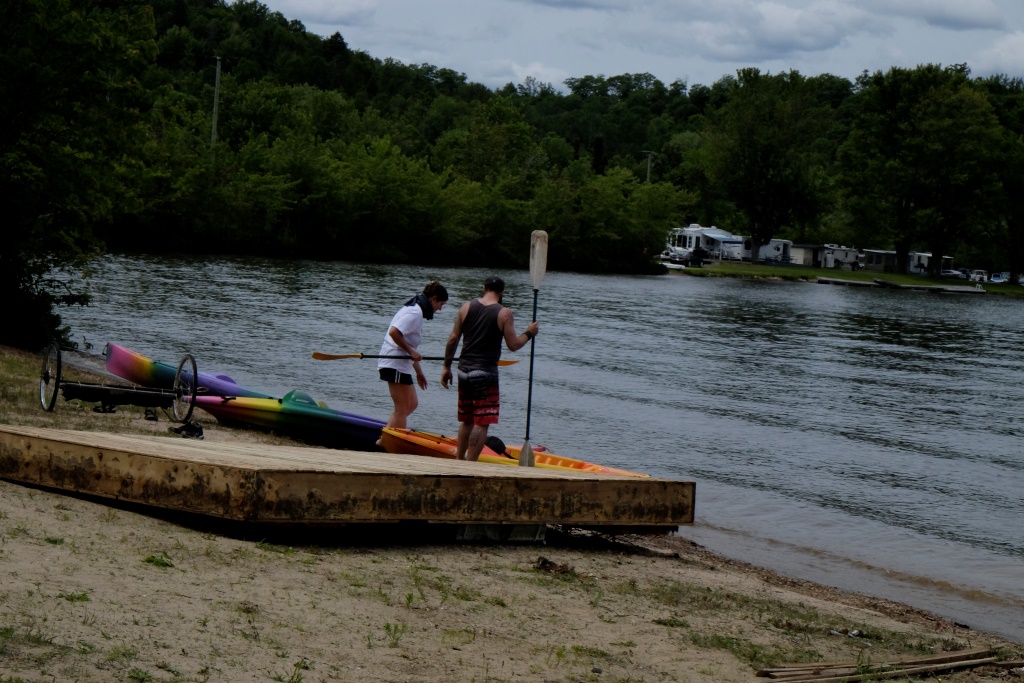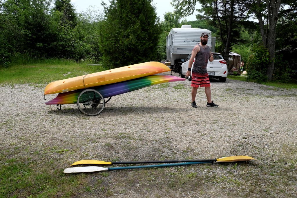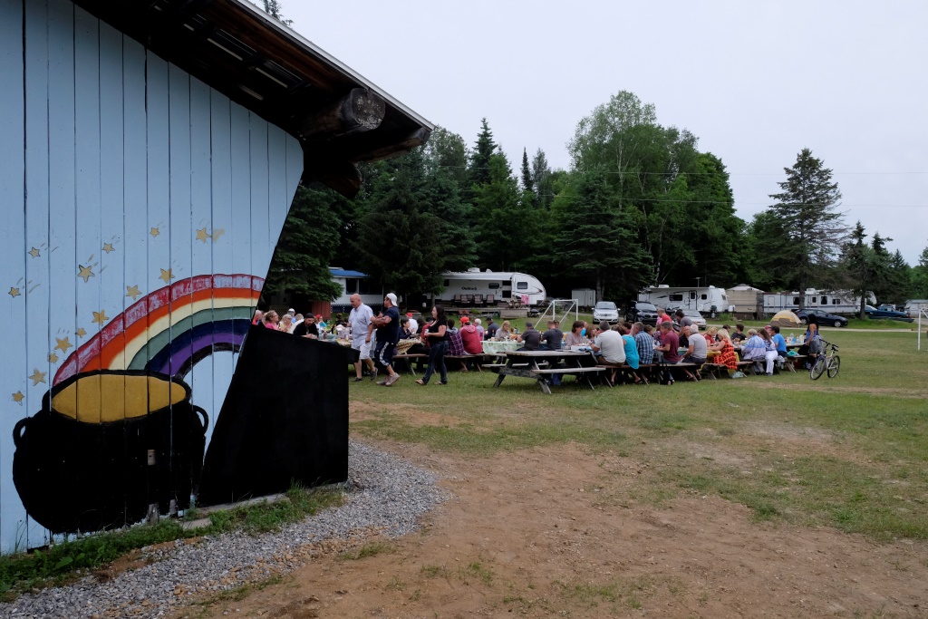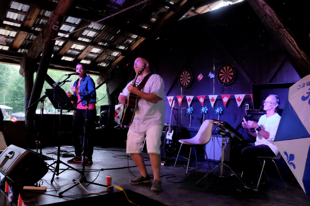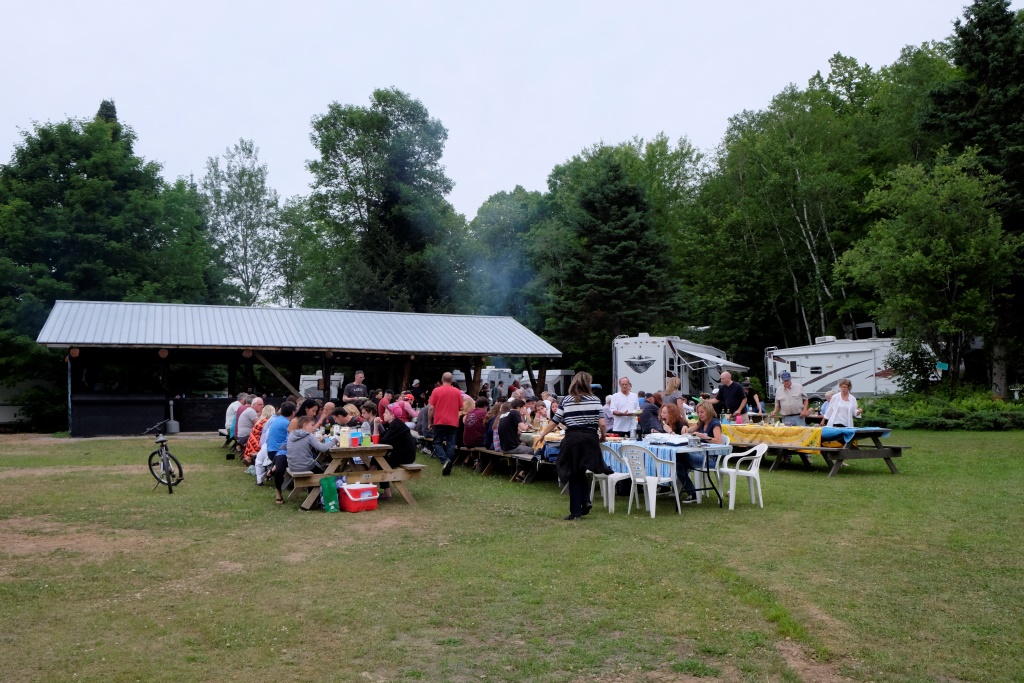 Pēcpusdienā dodamies uz kempinga centrālo laukumu – tur šovakar notiek pasākums. Puse no atpūtniekiem šeit ir no Kvebekas provinces, otra puses no pārējās Kanādas. Kvebekas nacionālie svētki ir 24. jūnijā, bet visā Kanādā tie ir 1. jūlijā. Lai neaizvainotu nevienu no pusēm, šeit svinības notiek abiem datumiem pa vidu. Svētku nojume ir izrotāta ar Kvebekas un Kanādas karodziņiem, pasākums tiek vadīts gan franču, gan angļu valodās. Mielasta norise ir oriģināla – katrs pats ir atbildīgs par gaļas sadaļu, bet folijā cepti kartupeļi un salāti ir kolektīvi pieejami.