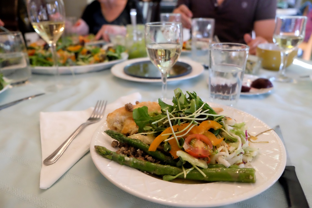 Šodien punktu uz „i” pieliek ģimenes variņas pie Rafaēla mammas un vecmāmiņas. Iesākumā ieklūpam avenājos un krietni samazinām sarkanās krāsas klātbūtni šajā apvidū. Tad man tiek izrādīta māja – pie sienām gozējas abu namamāšu gleznas, mamma apgalvo, ka vecmāmiņai esot lielāks talants. Kad viss apskatīts un ieradušies pārējie galda biedri – Ženija, Saimons un viņa tēvs, sēžamies pie galda. Mamma smejas, ka šīs esot Ziemassvētku vakariņas jūlijā. Īstajos Ziemassvētkos Rafaēls nebija mājās un atkal nebūs kādu laiku, tāpēc šodien ir tā retā reize, kad visa ģimene sanāk kopā. Es mazliet uzskatu sevi „par piekto riteni” šajā kombinācijā, bet visi izturas ļoti laipni, īpaši vecmāmiņa, kura savos 85. gados bārsta jokus ar melnu nokrāsu. Galdā tiek celts milzīgs salātu šķīvis, pīle, gaļas pīrāgs un dažādas uzkodas – viss ir super-truper bioloģisks. Saku Rafaēlam, ka tagad saprotu, kāpēc viņš ir tik izvēlīgs attiecībā uz ēdienu. Saldajā ir ogas ar šokolādi. Ēdienu papildina baltvīns un šampanietis, kā nojaušat, ne jau šāds tāds. Uz atvadām mamma iegrūž mums veselu maisu ar dažādiem kempingā noderīgiem produktiem – makaroniem, kartupeļiem, cepumiem, mērcēm, garšvielām utt. Mammas visur ir vienādas. Pateicamies un sabučojam visus, saņemam laba ceļavēja vēlējumus un laižam mājās – jāpabeidz kravāšanās process.