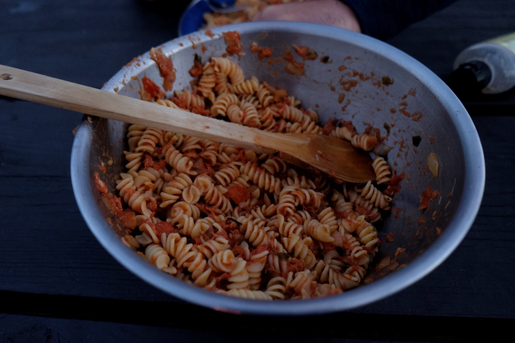 Uzceļam telti, pagatavojam vakariņas, tad iekurinām ugunskuru, sitam zoli un gaidām nakti. Mums tieši blakus ir milzīga pļava, spriežam, ka no tās jābūt varenai zvaigžņu vērošanai. Lēnām top tumšs, metam mieru kāršu spēlei un pļāpājam tāpat – ugunskurs mums šonakt gana varens, šeit malka pieejama bez maksas un, kā zināms, „free is good”.