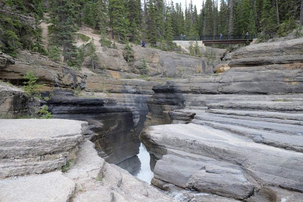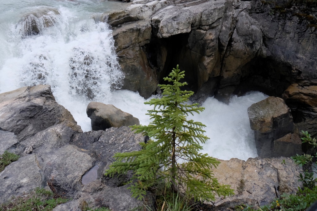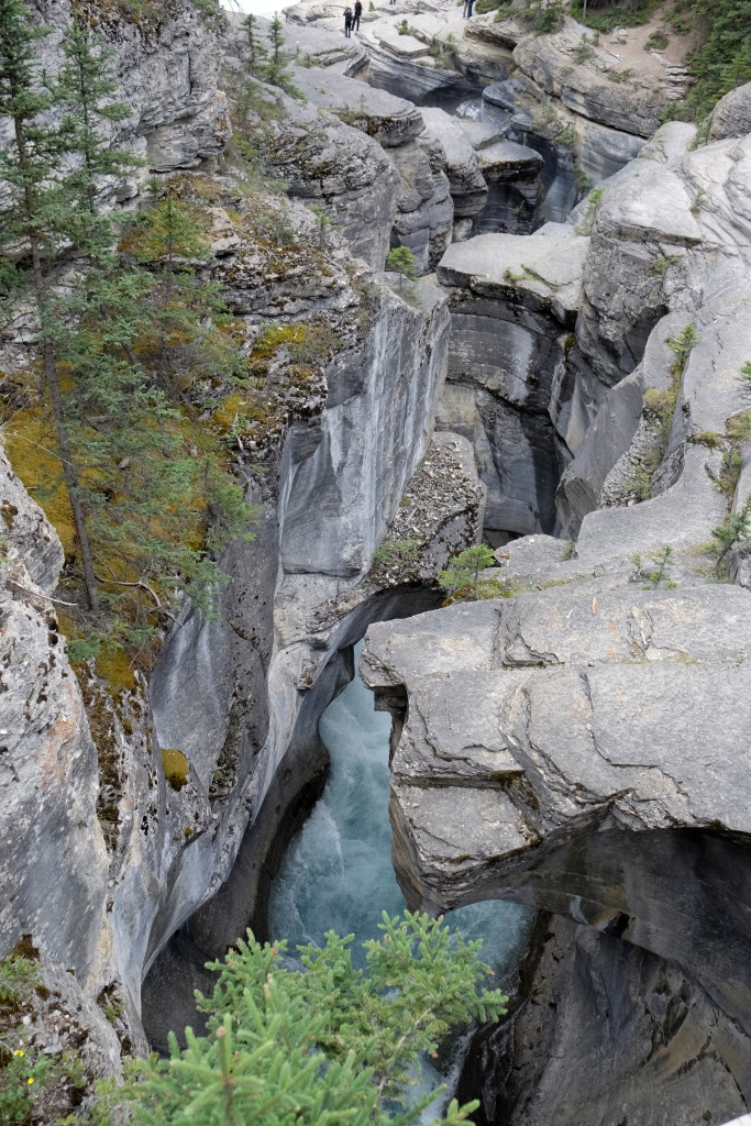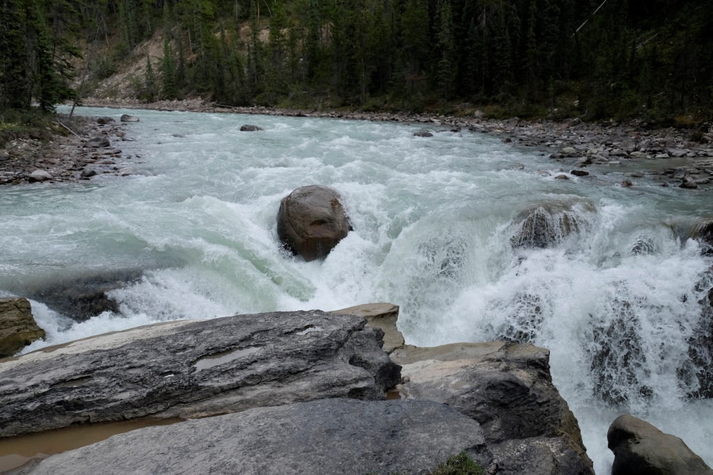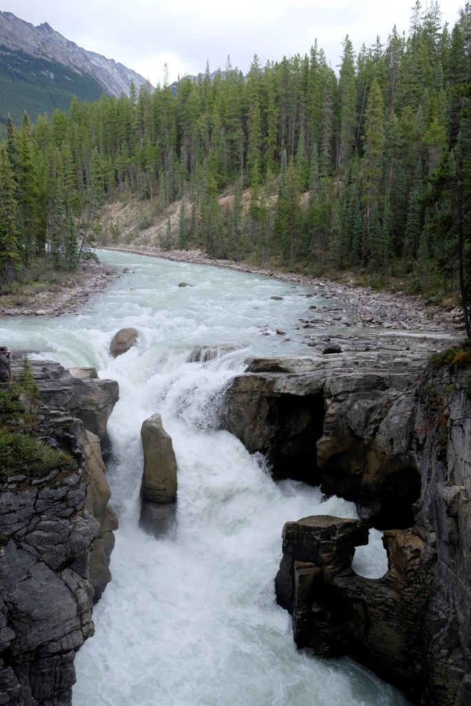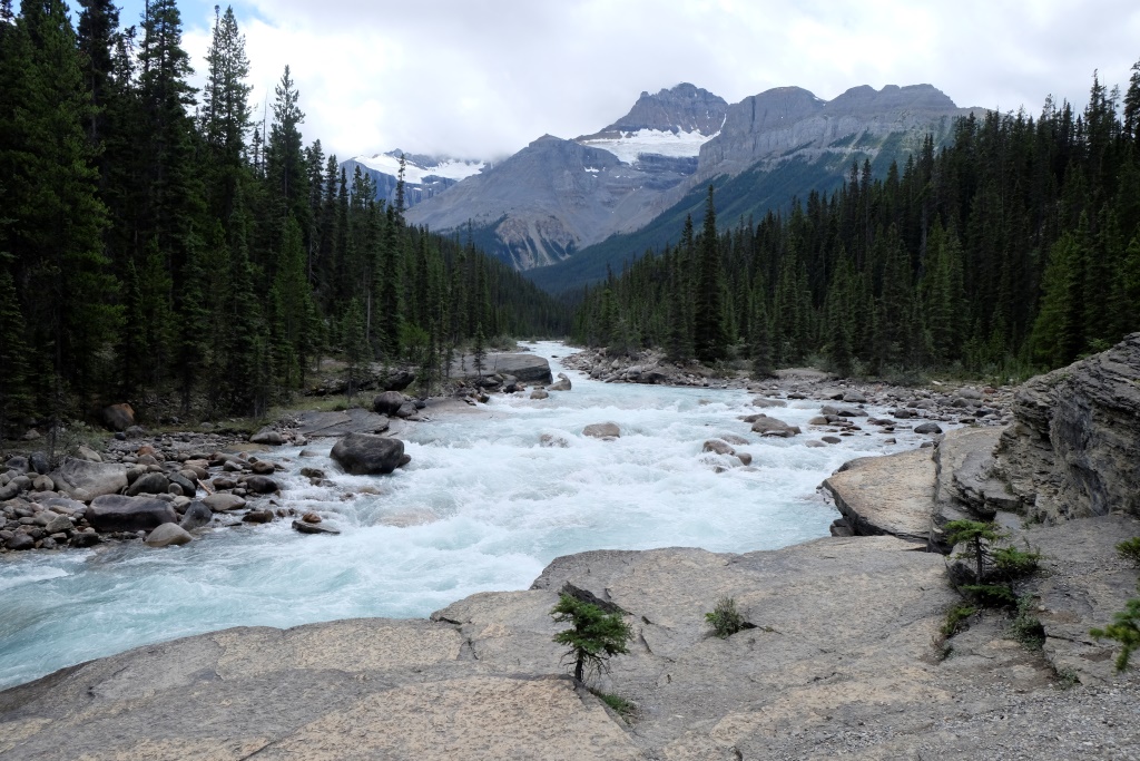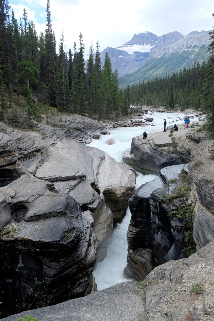 Pirmā pieturas vieta ir Mistaya upes kanjons – šaura, trakojoša ūdens straume izgrauzusi akmenī krāšņus līkločus un turpina to darīt joprojām. Tad ik pa laikam vienkārši pieturam ceļmalā, lai iemūžinātu kādu satriecošu ainavu. Šodien es atkal stūrēju un nevaru bildēt braucot. Ik pa laikam palūdzu Rafaēlu nobildēt kādu, manuprāt, ideālu ceļa skatu, bet viņam tas ne visai patīk. Rafaēlam ir grūti sadzīvot ar manu fotografēšanas un rakstīšanas māniju, viņš uzskata, ka vairāk jābauda ar acīm un „jāatslēdzas no tehnoloģijas”. Viņš ņirgājas par manu sejas izteiksmi ik reizi, kad netieku pie cerētās interneta sesijas. Ik pa laikam man šķiet, ka viņam taisnība, tomēr šis blogs ir mans prieks un arī maize. Ja nebūtu tā un jūsu labās sirdis, es šobrīd šeit neatrastos. Tāpēc vēlreiz visiem lielais paldies! Un par šodienu īpašais paldies Jānim Dzelmem!