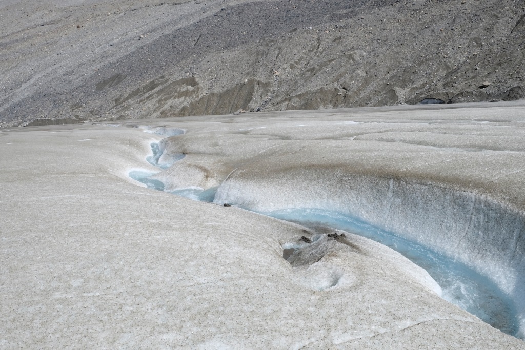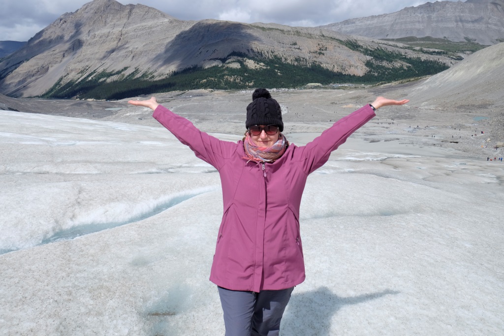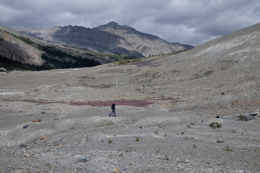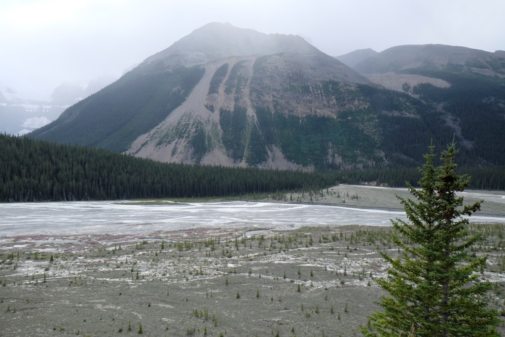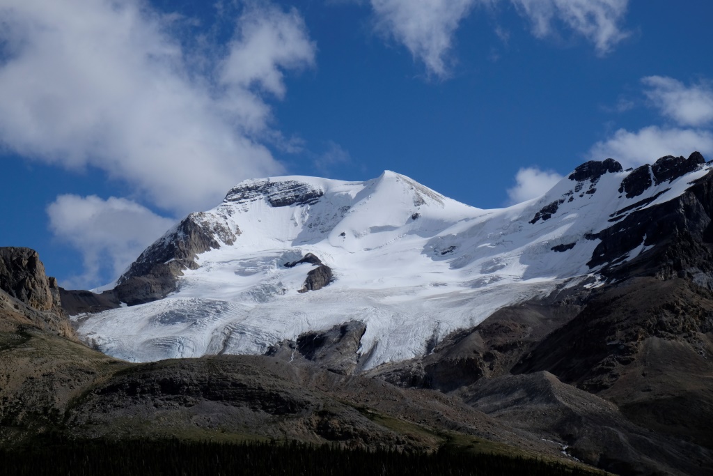 Galvenais apskates objekts šodien ir Athabasca ledājs, viens no milzīgā Kolumbijas ledus lauka atzariem. Kopš 1885. gada šis ledājs ir zaudējis 60% no sava apjoma – vairāk nekā 350 miljonus kubikmetru ledus. Nemaz nav jāskatās tik tālā pagātnē. Kalna nogāzē slejas plāksnīte, kur šis ledājs atradies 1982. gadā. Šķiet teju neticami, ka laikā, kas īsāks par manu mūžu, ledājs sarucis par vairākiem simtiem metru.