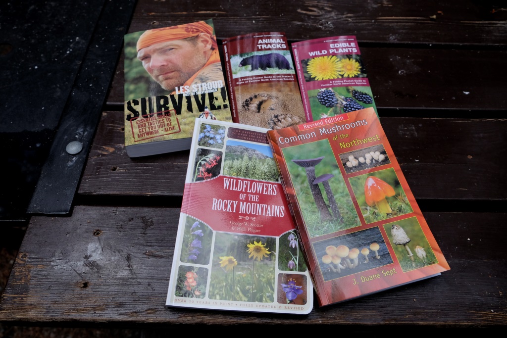 Šodien mērojam ceļu atpakaļ uz Banff, lai ar otro piegājienu „iekarotu” Luīzes ezeru. Pirms tam piestājam ciematā, papildinām pārtikas krājumus un iegādājamies veselu bibliotēku – man kārojas vietējo augu atpazīšanas grāmata, Rafaēls izvēlas kādu dabā izdzīvošanas lasāmvielu, kā arī nospriežam, ka zvēru pēdu un sēņu ceļvedis mums nekaitēs. Sēņu grāmata jau mani ir pamatīgi samulsinājusi, pieskāros tēmai iepriekšējā ierakstā. Gandrīz visas bildē redzamās sēnes, kas ir nepiedienīgi jocīgās krāsās un formās un pilnīgi noteikti izskatās tā, ka ar tām var saindēties vienkārši ilgāk paskatoties virsū, izrādās ēdamas, bet bērzlapes un alksnenes, lūk, tādas neesot gan. Un es vēl sevi par sēņu zinātāju uzskatīju.