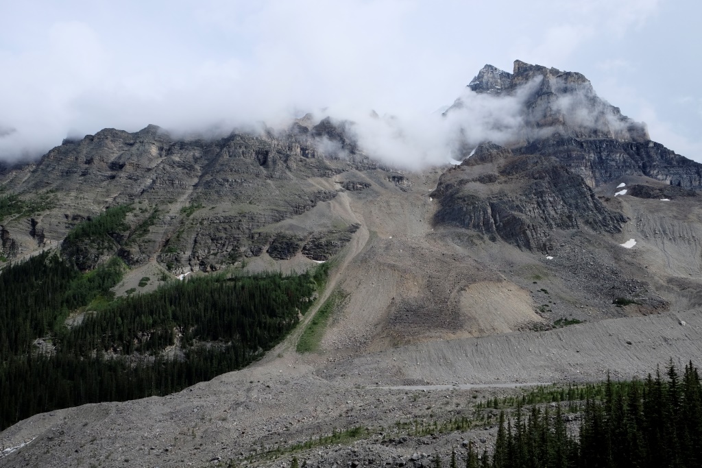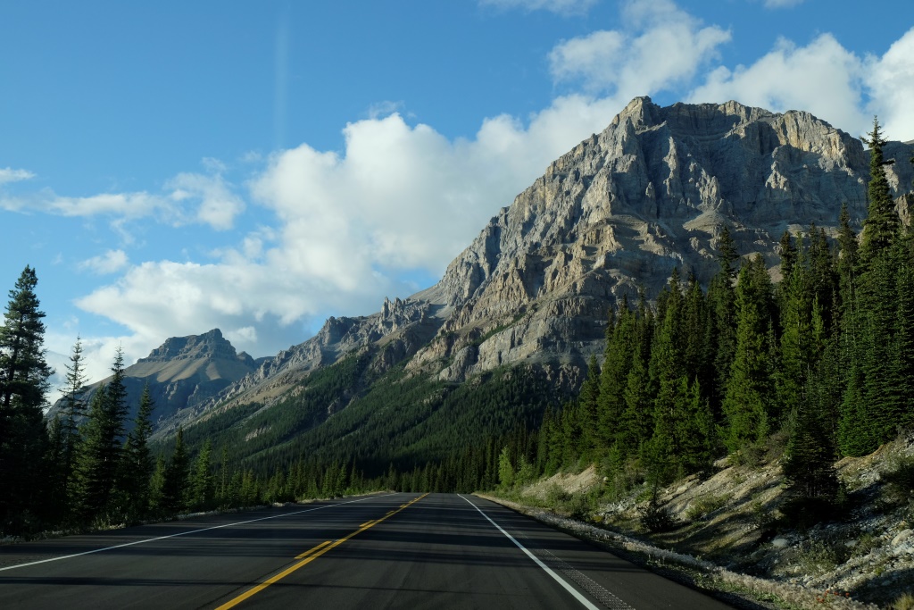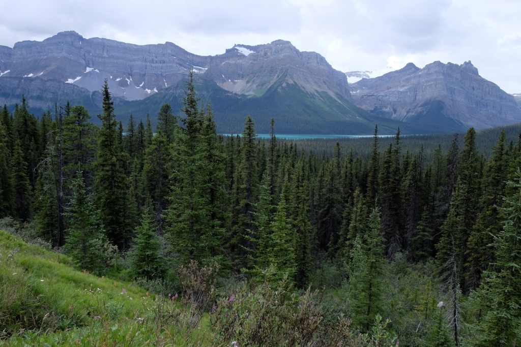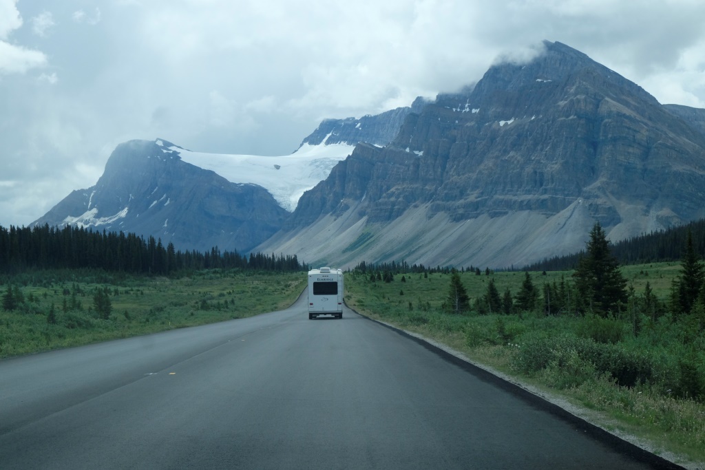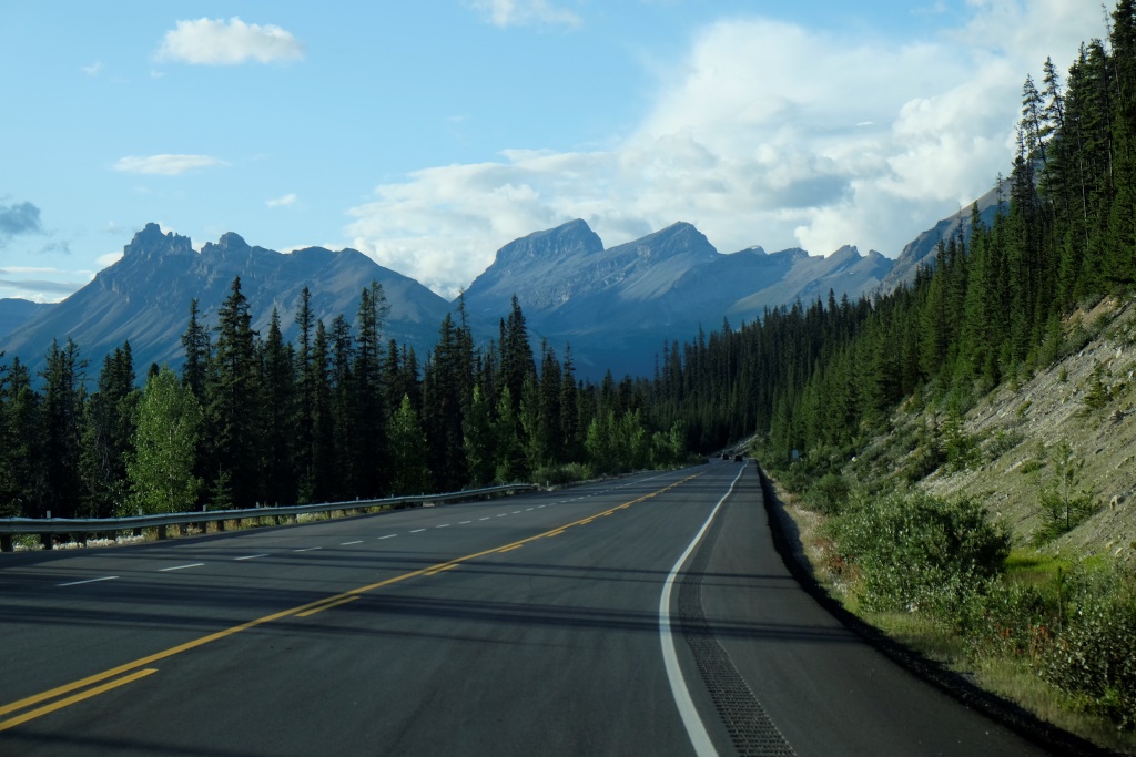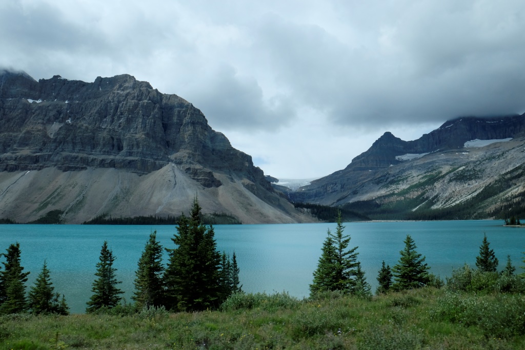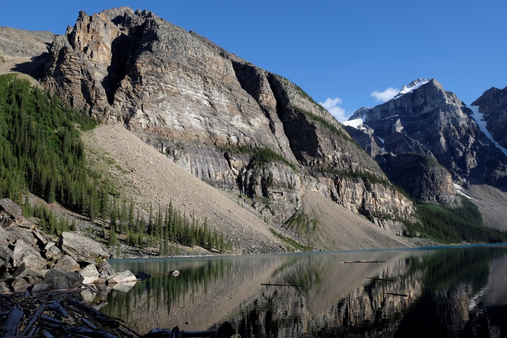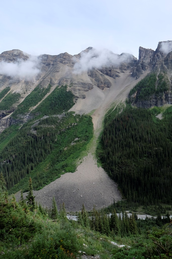 GPSa baterijas gan neizturēja šo kāpienu, bet mans pieņēmums ir, ka šodien esam pievarējuši kādu 17 – 18 km. Katrā ziņā kājas īd, ka vienai dienai būs gana staigāts. Vēl tikai ar auto aizšaujam līdz netālajam Morēnas ezeram, kura kalnu ainava savulaik gozējās uz 20 Kanādas dolāru naudaszīmes.