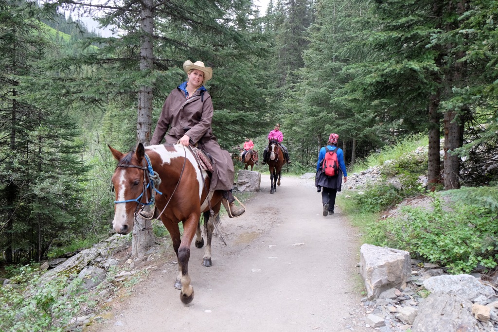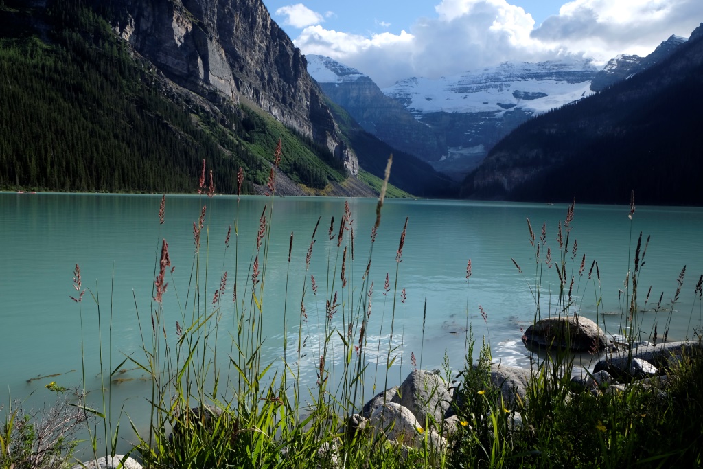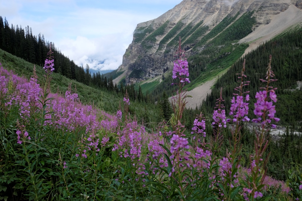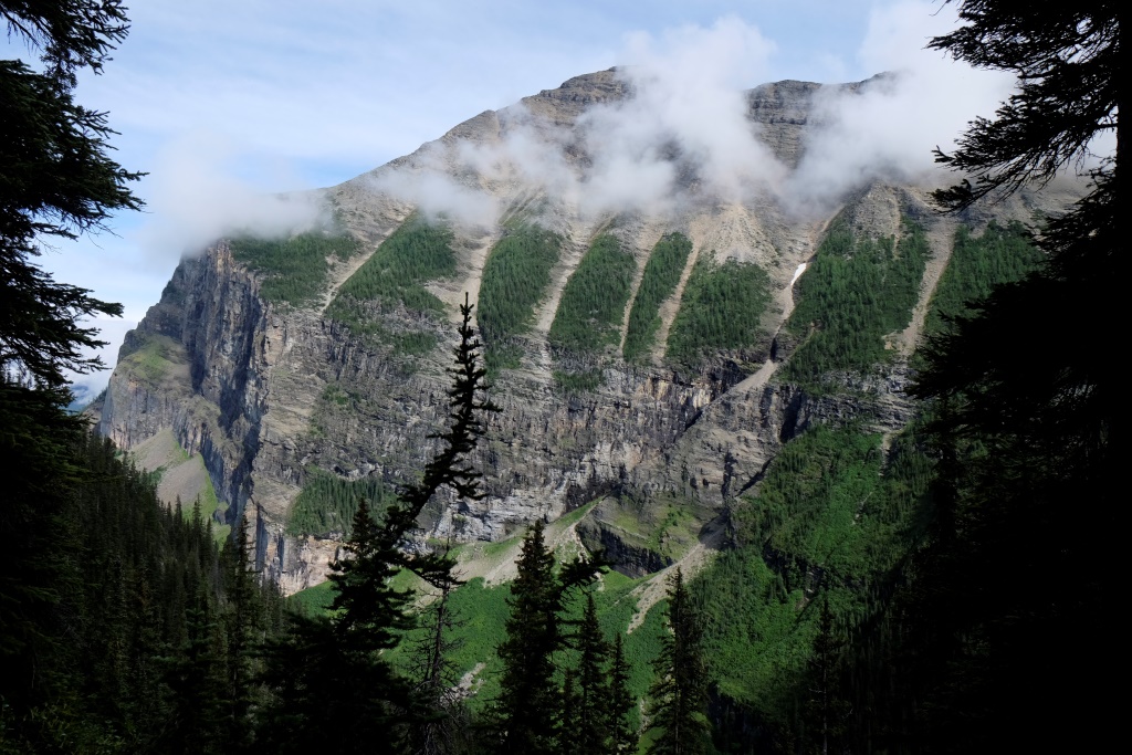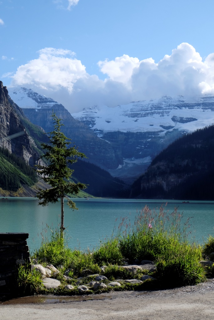 Par spīti aizdomīgajam laikam, nolemjam iziet vienu no Luīzes ezera apkaimē pieejamiem maršrutiem. Pats ezers arī ir skaists bez gala, bet, pateicoties tā pasaules slavai, ļoti apmeklēts. Arī milzīgā viesnīca ezera krastā izskatās nedaudz nepiedienīgi. Priecājamies pazust kalnos un mežos, kur ir drusku mierīgāk. Lietus velkas, velkas un savelkas, sīka līņāšana tiek papildināta ar maziem krusas graudiem, bet pēc brīža lietus jau bungā ar pamatīgu entuziasmu. Es arī neesmu vakarējā – man mugurā jaunā pretlietus jaka un pāri tai vecais pančo. Ir drusku karsti, bet lietus klāt netiek. Šoreiz Rafaēls ir aizsteidzies uz priekšu, tiksimies tējas namiņā. Apkārtējie kalni tīti lietus un miglas mākoņos, arī ezeru vairs neredz aiz pelēkas sienas. Atliek vien sakoncentrēt domas un spēkus, lai ātrāk nonāktu pie siltas tējas.