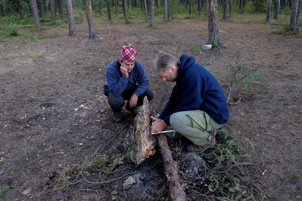 Es gan brīdinu puišus, ka tautas gudrība vēsta, ka nevajag jaukt sēnes un alkoholu, tomēr nospriežam, ka abi produkti nelielās devās mūs nepiebeigs. Tā nu mēs vakarējam ezera, ugunskura un zvaigžņu sabiedrībā, šovakar Markuss mūs izklaidē ar saviem stāstiem. Strādājot Kanādas ziemeļos nakts maiņās, viņš ziemas spelgonī, mīnus 50 grādos, teju katru nakti varējis vērot ziemeļblāzmu izrādes. Mēs abi ļoti ceram, ka šajā braucienā mums izdosies redzēt kaut vienu.