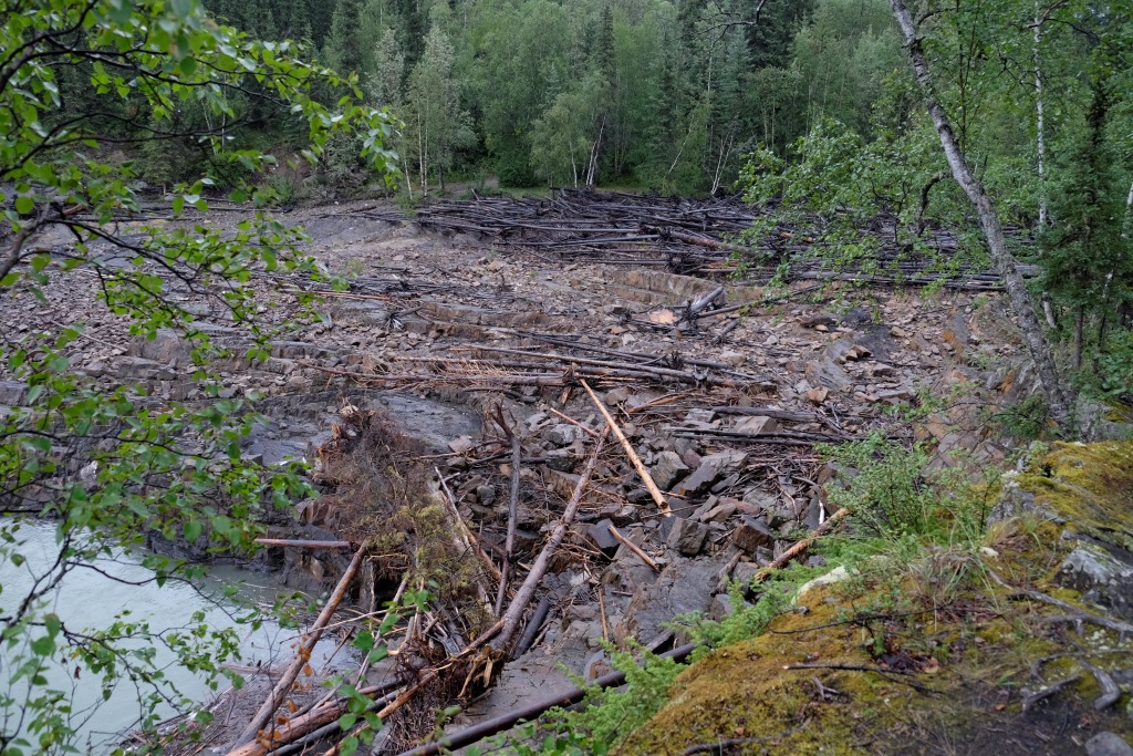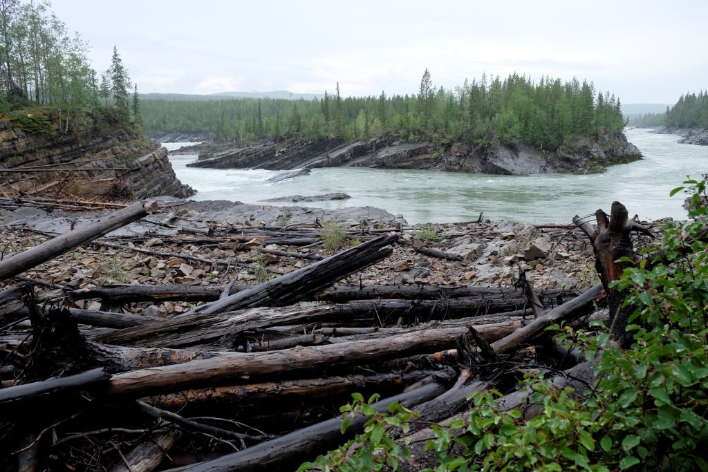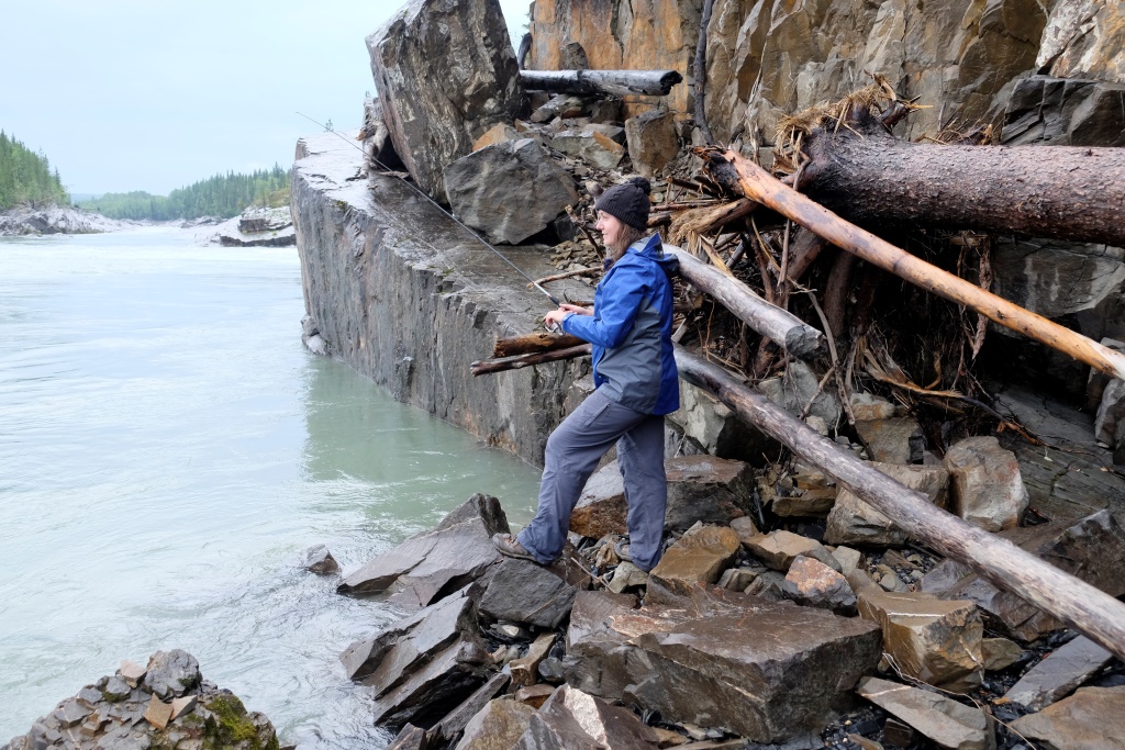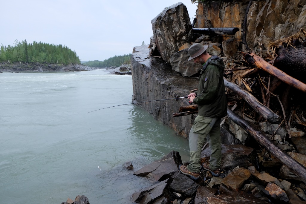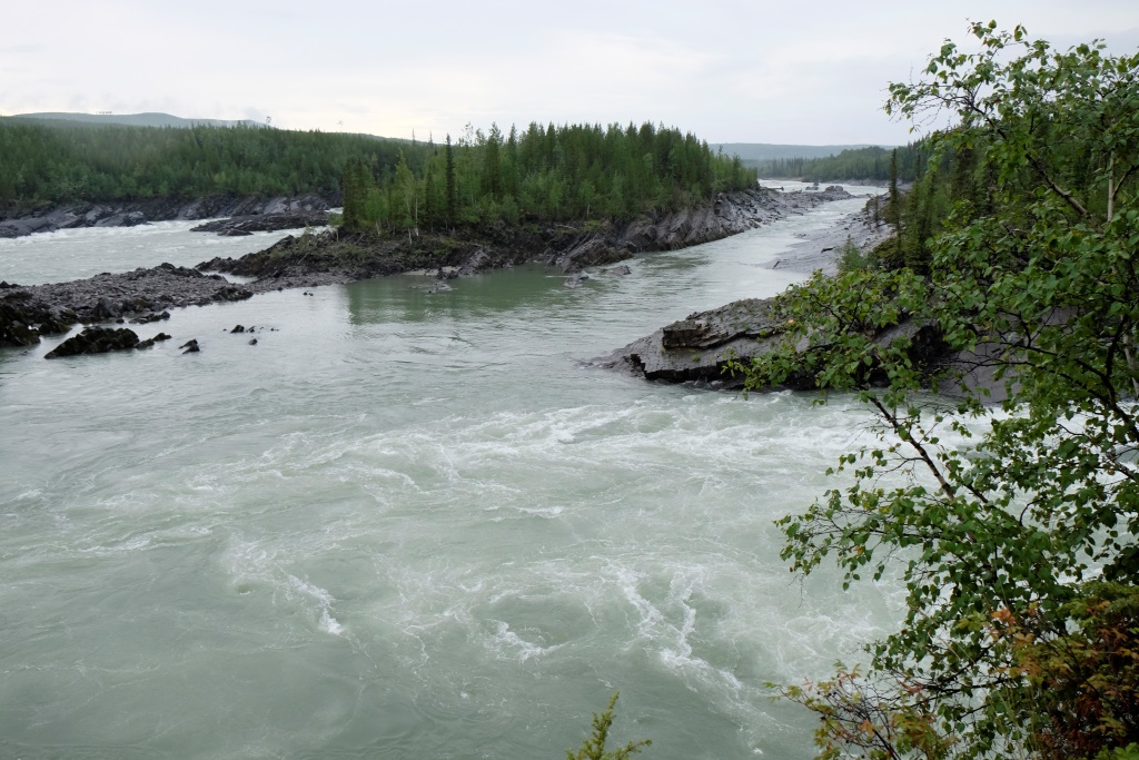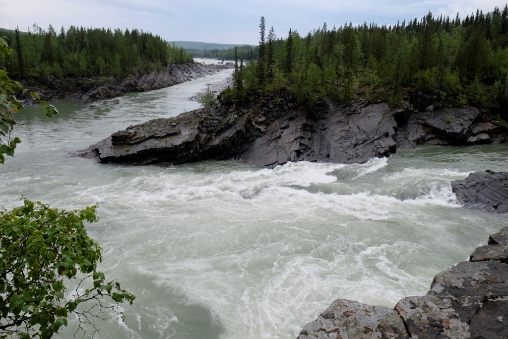 Mēs aizbraucam uz 70 km attālām krācēm, upe šai vietā izskatās satriecoši. „Pagaidi, kad pārrāpsimies klintij otrā pusē”, Markus smejas. O, jā. No klints augstuma labi pārredzamas visas krāces, upe pēc lietiem ir mutuļojoša un viegli dubļaina, ka jau Markuss bija paredzējis. Izmēģinām laimi nepilnu stundu – iemetiens man sanākot dikti labs. Tomēr ar to nav gana, otrā galā pieķeras vien aļģes. Kad ieāķēju akmeņos kaimiņa aizdoto vizuli un gandrīz to pazaudēju, metam mieru. Bet tagad mūsu jaunā makšķere ir darba kārtībā, kas arī bija jāpierāda. Atceļā vēl piestājam pie Smith upes ūdenskrituma – varens ūdens apjoms gāžas zemē tālu no skatu punkta. Lai tiktu līdz pašam ūdenskritumam, jāmēro stāva un dubļaina taka, bet, tā kā jau ir pavēls, saēdušies avenes un papriecājušies par smukumu pa gabalu, laižam atpakaļ uz nometni.