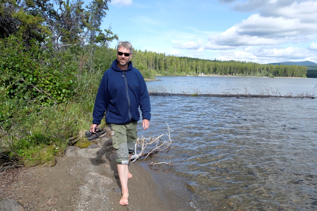 Mūsu palikšanas vieta ir tieši uz Jukonas un Britu Kolumbijas robežas. Mums gan ir tikai Jukonas makšķerēšanas licence un prātojam, vai, šeit makšķerējot, varam iekulties nepatikšanās – ja nu vizulis iekrīt Britu Kolumbijā. Tomēr neviens par mums nekādu interesi neizrāda – puiši makšķerē, bet es, iemetusi somā pretlāču aerosolu, izmetu vēl vienu sēņu loku pa mežu – nu kā tu mierā nosēdēsi, kad var apšu bekas sauc. Apšu bekas ir manas sirēnas un manas maldugunis. Lai arī mežos orientējos labi, teju katru gadu pamanos sēņojot mazliet apsamaldīties. Pēdējos gados gan GPS laupa šo prieku.