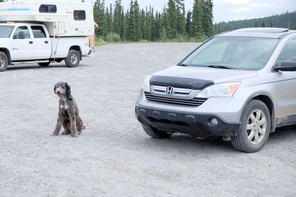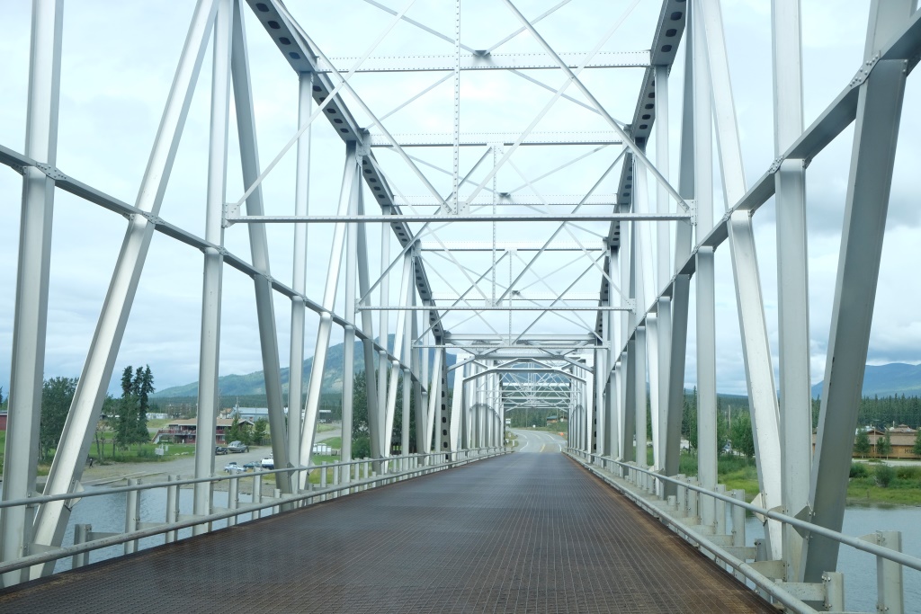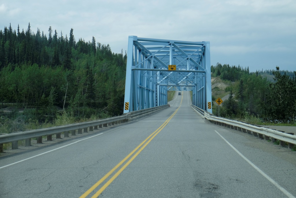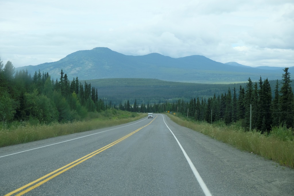 Apstājamies vietā, kur pēc ceļa izbūves darbiem uz ziemeļiem no Teslinas, visi būvniecībā izmantotie spēkrati vienkārši tikuši pamesti ceļa malā, lai neradītu dempinga cenas automobiļu tirgū. Tagad šie vraki ir viens no apskates objektiem. Lielākā vraku koncentrācija gan esot pārsimts kilometrus tālāk, bet, tā kā tas nav pa ceļam, tad tos mēs paliksim neredzējuši, tāpat kā vēl citas simts vietas, visu nevar pagūt. Un mēs esam no tiem ceļotājiem, kas dod priekšroku – mazāk redzēt, bet vairāk pieredzēt. Un tas parasti izdodas, ceļojot lēnām, izbaudot vietas, ļaujoties jaušībām.