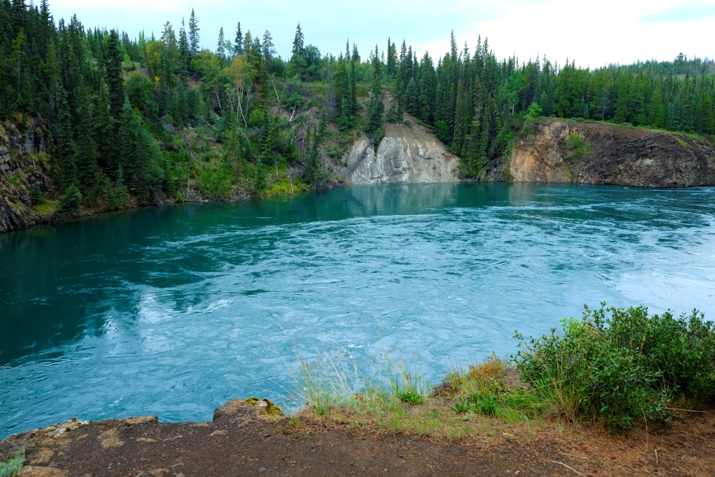 Iebraukuši Jukonas galvaspilsētā Whitehorse, kas Ginesa grāmatā ierakstīta kā pilsēta ar tīrāko gaisu pasaulē, iesākumā paviesojamies Miles kanjonā un sasveicināmies ar vareno Jukonas upi. Šeit tās ūdens ir tirkīzzils, bet Markuss stāsta, ka esot braucis ar laivu gabaliņu tālāk, kur tā satiek citu upi, kas ir melna. Abas ūdens straumes plūstot blakus, bet nesajaucoties, ar kanoe var stūrēt tieši pa abu krāsaino ūdeņu robežu.