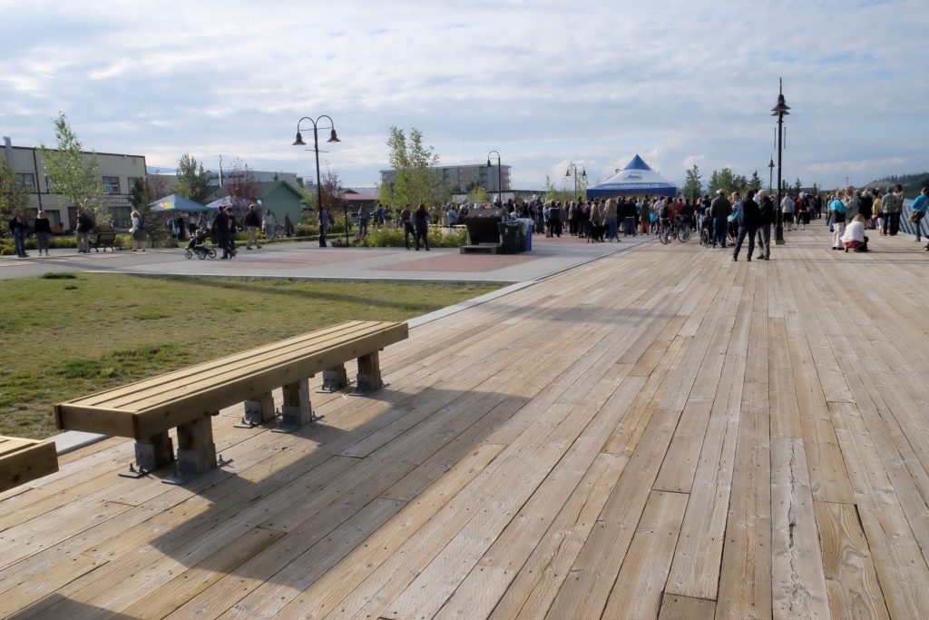 Pašlaik šeit ir garum garas dienas – gaišs ir līdz pat 11 vakarā. Pēc koncerta izstaigājam nelielo pilsētiņu, paveramies uz vakara saules apspīdētajām ēkām un cilvēkiem, tad atgriežamies kempingā. Vēl ir gaišs, tāpēc apskatām netālu esošo hidroelektrostaciju. Cenšamies ūdenī saskatīt arī lašus, tomēr šai nodarbei gaismas nepietiek. Kad satumst vēl vairāk, Markuss mums uzliek noskatīties divas īsas filmas. „Kitturiaq”, ko uzņēmis Frank Wolf (https://en.wikipedia.org/wiki/Frank_Wolf_%28filmmaker%29), ir par diviem trakiem vīriem (no kuriem viens ir viņš pats), kas ar kanoe, brīžiem to nesot un velkot, mēroja 620 km pa Labradora plato. Ļoti ekstrēms pasākums, varat mēģināt atrast video interneta plašumos. Otrs stāsts ir tapis 60 gados par sirmu vīru Albertu, kurš mēģināja tikt augšup pa Nahani upi, jo ticēja, ka tur atrodams zelts. Filma vēsta par viņa astoto neveiksmīgo mēģinājumu. Jā, salīdzinot ar šiem cilvēkiem un arī Markusu, mēs esam galīgi dīvānceļotāji.