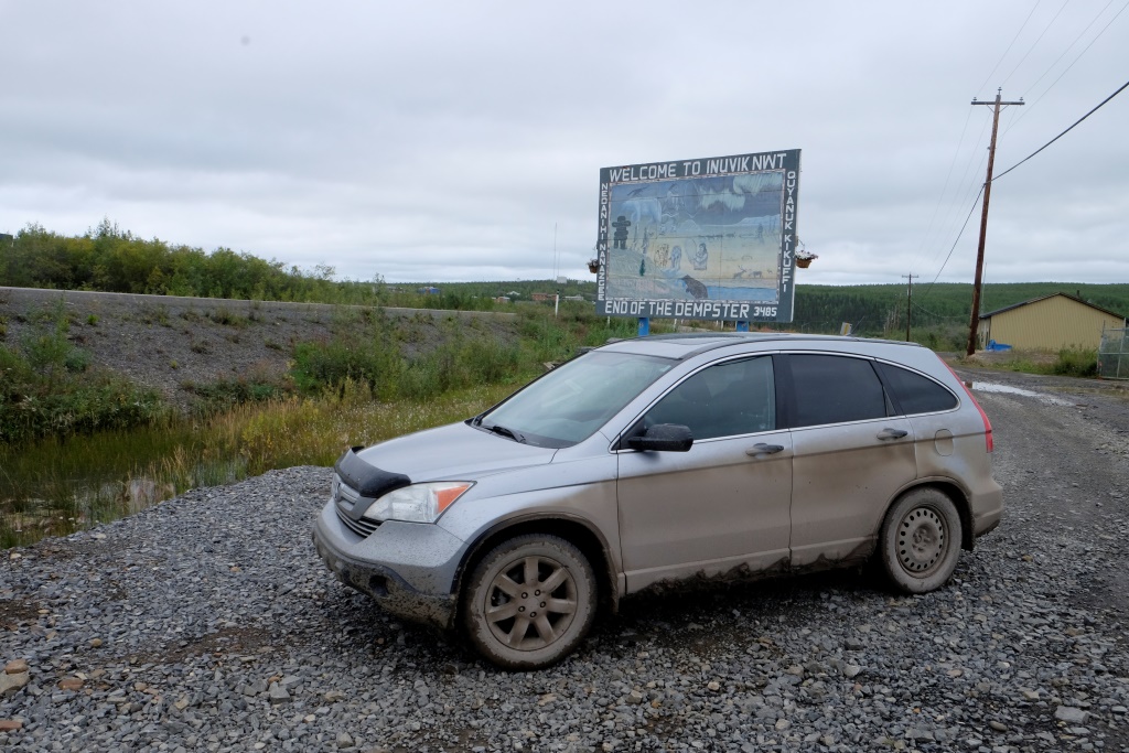 Ap pieciem pēcpusdienā esam klāt. Dempstera ceļa beigas un Inuvik pilsētas sākums. Es jau pēc Rafaēla skatiena noprotu, ka viņš šonakt grib gulēt zem jumta. Un gultā, nevis uz galda. Esam pavadījuši kempingos astoņas naktis pēc kārtas, kas ir līdzšinējais rekords. Esam pārsaluši, noguruši un ļoti netīri. Kā tad, pilsētas vidū Rafaēls nāk klajā ar paziņojumu, ka mēs varētu pameklēt kādu lētu moteli.