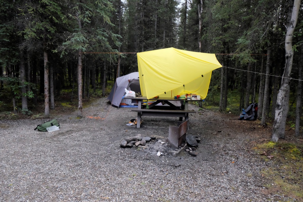 Kīts no rīta mūs pamodina, paziņodams, ka atnesis savu dzelteno nojumi mums – lai varam patrenēties tās uzliešanā un lai mums ir, kur pa dienu patverties. Lietus gāza visu nakti un nav rimies joprojām. Mēs nomurminām paldies un pagriežamies uz otriem sāniem. Es šonakt gandrīz murrāju – esmu ielīdusi flīsa „paladziņā”, savā guļammaisā un Kīts, uzzinājis, ka naktīs salstu, man ir piešķīris savu lieko guļammaisu. Šī trīskārtējā kombinācija ir tik silta, ka es galīgi negribu līst ārā no siltās migas atpakaļ lietū.