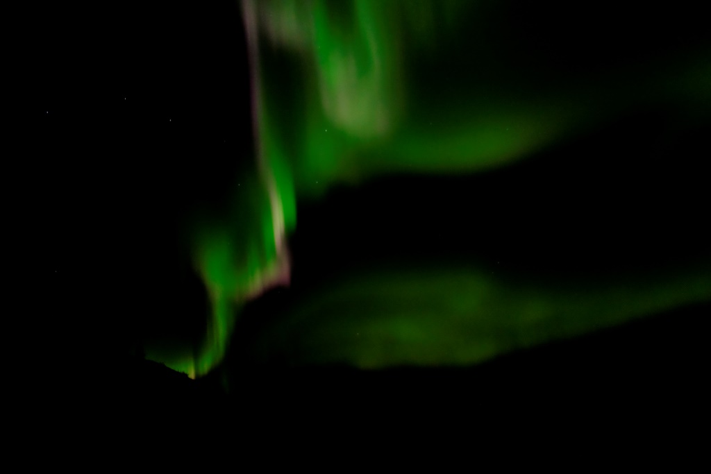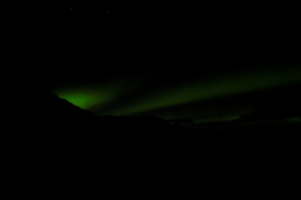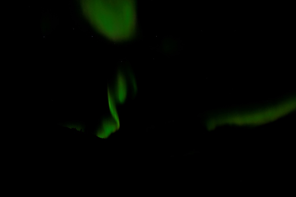 Tad notiek TAS. Viss iepriekšējais ir bijis kā reklāma pirms filmas sākuma. Tagad tiek iedegtas skatuves gaismas un pirmās iznāk zaļās balerīnas. Sameklējusi zem krēsla apakšžokli, paķeru fotoaparātu, aizcērtu mašīnas durvis un skrienu uz telti modināt Rafaēlu. Kamēr šis tuntulējas, izrāde notiek pilnā sparā – pa debesīm dejo zaļas un baltas gaismas. Brīžiem tās ir tikai vienā vietā, bet citā mirklī nezini, uz kuru skaistuli skatīties, uzstājas piecas primadonnas vienlaicīgi. „Wow”, tas ir vienīgais, ko Rafaēls ir spējīgs pateikt. Kad esmu gana baudījusi skatu ar acīm, cenšos kaut ko nobildēt. Es neprotu bildēt tumsā un ir sanākuši vien izplūduši gaismas pleķi, tomēr atļaujos ielikt tos pašus, lai kaut drusku parādītu notiekošā varenību.