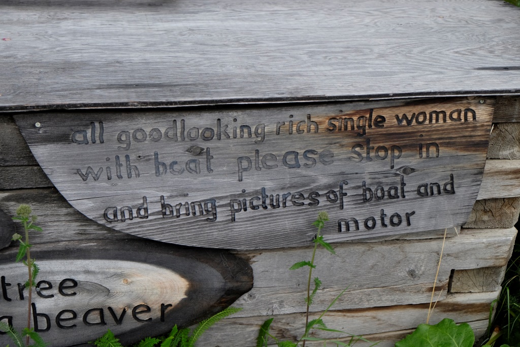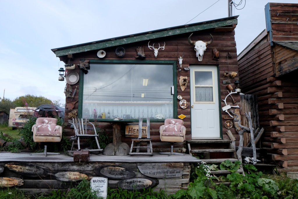 Markuss stāsta, ka Atlin pilsētā neesot īpašu arhitektūras noteikumu, tāpēc katrs var izpausties pēc sirds patikas. Dažas mājas ir gana amizantas. Arī Henrija namiņš – šveiciešu vīrs gados šeit atradis savu miera ostu. Kad viņa pirmā sieva pirms nez cik gadiem laimējusi lielu naudas summu loterijā, šis laidies prom neatskatoties, jo dzīve tapusi neciešama, visam bijis jānotiek pēc sievas prāta. Vispār tā man ir viena no šī ceļojuma mācībām – nekad iepriekš nebiju novērojusi, cik ļoti cilvēkiem nepatīk, kad „viņus māca dzīvot”, norāda, kā lietas darāmas. Jo īpaši vīriešiem. Citreiz pat nevainīga piezīme var novest līdz lūpas uzmešanai uz skapjaugšas. Man šķita, ka es ar šo lietu īpaši neizceļos, tomēr mācos turēt muti „in general”. Henrija nama priekšu rotā dažnedažādi spārnoti izteicieni, kas balstīti viņa dzīves pieredzē (skat. bildes). Mēs tiekam pacienāti ar pašbrūvētu alu un tiekam pie dažiem kolorītiem stāstiem.
