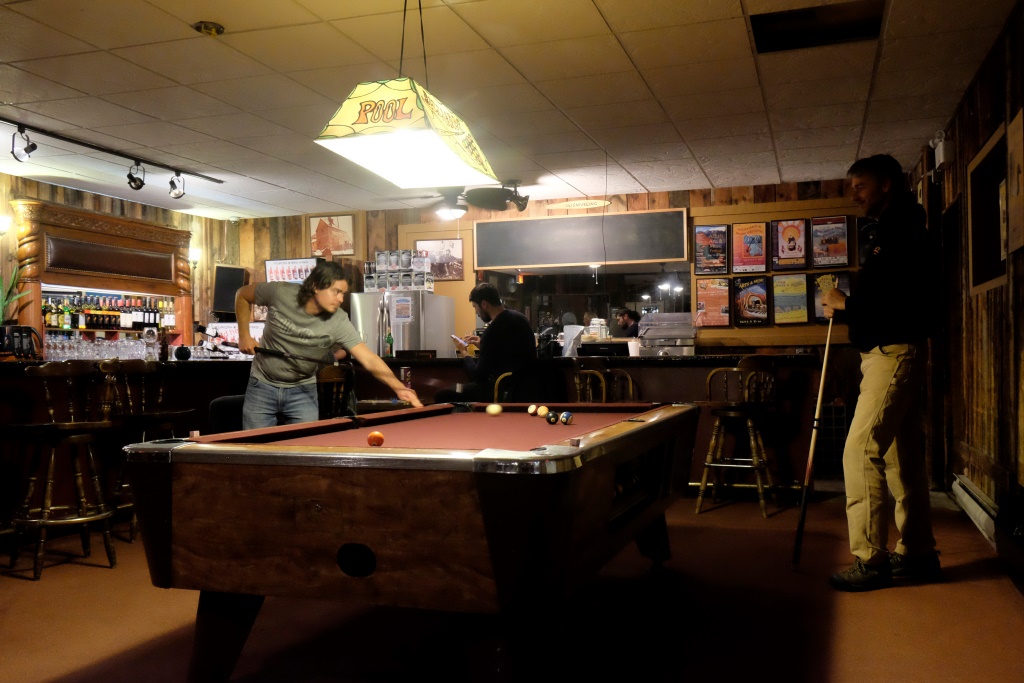 Vakarpusē vēlreiz apciemojam pilsētas centru – iemalkojam alu vienā no diviem šejienes bāriem, uzspēlējam dažas biljarda partijas un vērojam vietējos. Dažus no tiem Markuss pazīst un stāsta, kas ir kas. Bārmene, kas ir no Kvebekas, papildina Markusa sacīto – pamatā bārā sēdošie vīri ir zeltrači. Zelta ieguve joprojām ir viena no galvenajām šejienes nodarbēm. Viņa smejas, ka daži viesi, kas te mēdzot iegriezties, esot miljonāri, bet nekas ne viņu izskatā, ne attieksmē neliecinot par to.
