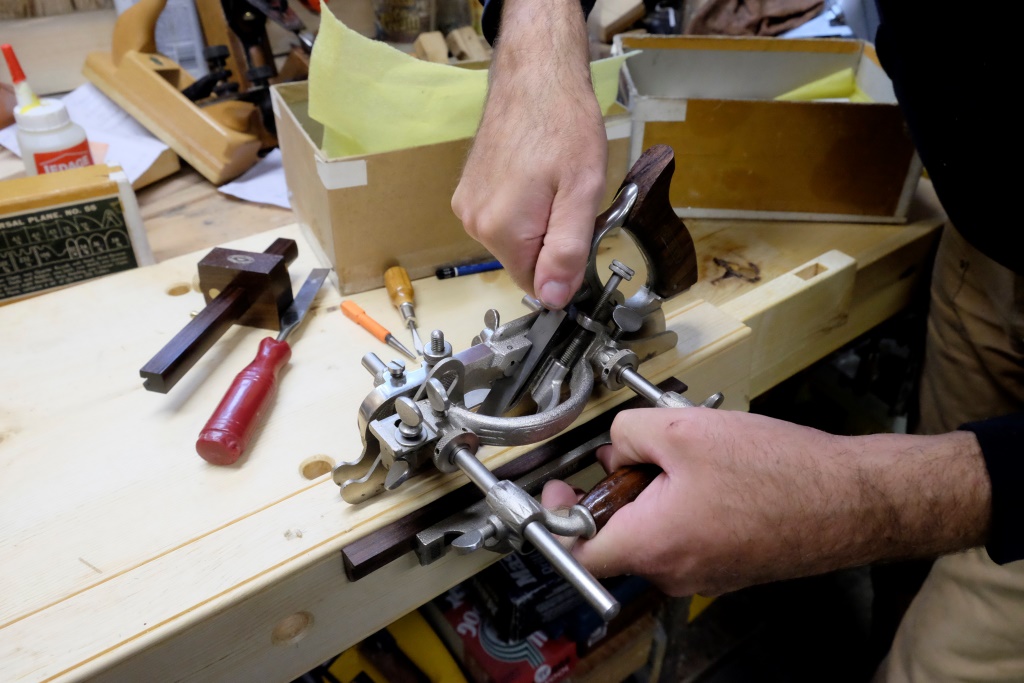 Kad nu šis svarīgais lēmums ir pieņemts, izbaudām lēnu rītu, darot katrs savas lietas. Vienā brīdī Markuss mani pasauc lejā uz darbnīcu, kur viņš strādā pie sava koka darbagalda uzlabošanas, pašlaik būvējot kādu detaļu, kuru lietojuši galdnieki 17. gadsimtā. Markuss pārsvarā strādā bez elektroierīču palīdzības un vairums viņa darbarīku izskatās kā no muzeja plaukta nocelti. Varu skatīties, kā viņš ar šiem antīkajiem rīkiem pārdesmit minūšu laikā izgrebj koka sānā absolūti perfektu gropi. Markuss man arī sniedz atbildes uz pāris kokapstrādes jautājumiem, kas labu laiku nomāca manu prātu. Droši vien, kad ķeršos praktiski „pie lietas”, būs vēl simts un viens jautājums, bet pagaidām viss ir skaidrs kā diena.
