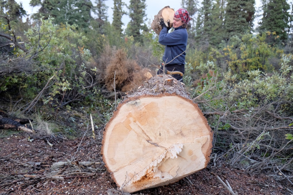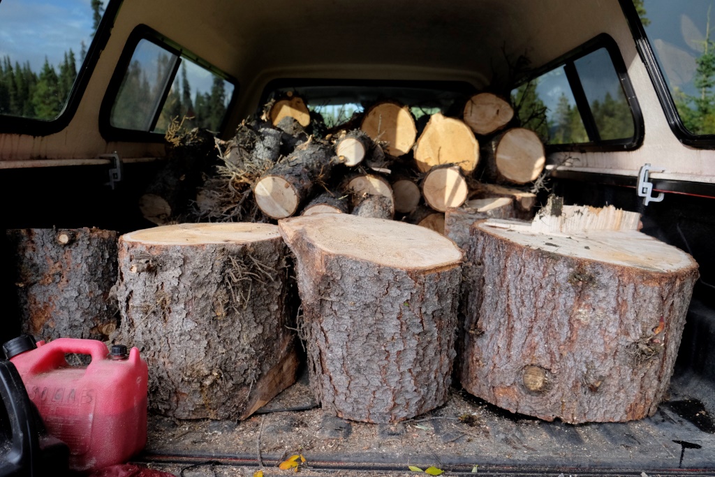 Virzoties uz māju pusi, aizrunājamies par malkas sagatavošanu ziemai. Saruna noslēdzas ar to, ka piedāvājam Markusam palīdzību. „Tiešām?”, viņš brīnās. Nu, ja reiz esam šeit un izmantojam viņa viesmīlību, kāpēc gan lai mūs neizmantotu kā darbaspēku. Domāts – darīts. Atgriežamies mājās, iekožam vieglas pusdienas, paķeram motorzāģi un laižam uz mežu. Noskatījuši sausu egli ar divām galotnēm netālu no ceļa, nogāžam to, atzarojam, sazāģējam gabalos un sakraujam pikapa piekabē. Ir tik laba sajūta izvingrināt muskuļus, darot kaut ko lietderīgu. Kad pikaps pilns līdz ūkai, pabraucam vēl mazu gabaliņu uz priekšu un papriecājamies par kalniem un ezeru vakara gaismās.