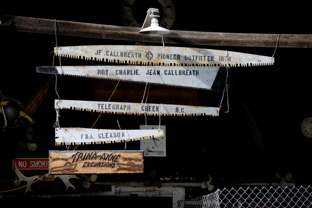 Pats Telegraph Creek miests, īpaši tā vēsturiskā daļa, atgādina spoku pilsētu. Mēs šeit uzturamies vairāk nekā pusstundu – izstaigājam apkārtni, paēdam pusdienas un visā šajā laikā nesatiekam nevienu cilvēku. Arī šīs vietas ziedu laiks bija zelta drudža gados.
