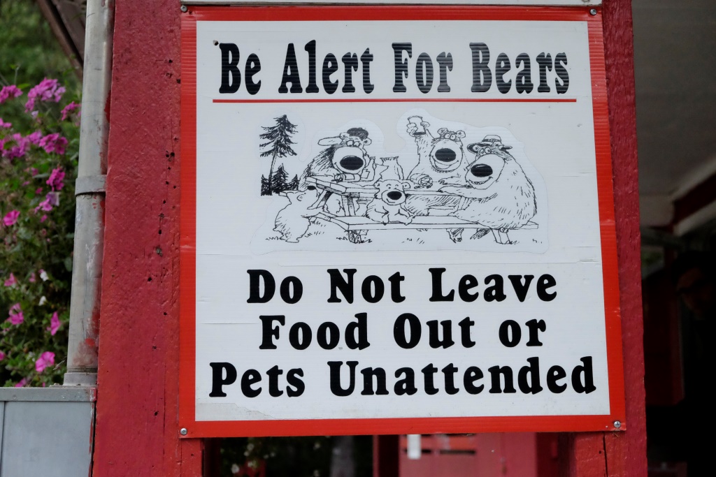 Vietām ceļš ir mazliet vienmuļš, vietām varam papriecāties par sniegu kalnos. Arī bez lāčiem šodien neiztiekam – ceļmalas pļavā ieturas divi mazi melnie lācēni. Pēdējā laikā gan man neveicas ar viņu fotografēšanu, tāpēc jātic man uz vārda vai jāprasa apliecinājums Rafaēlam. Trīspadsmit un četrpadsmit.