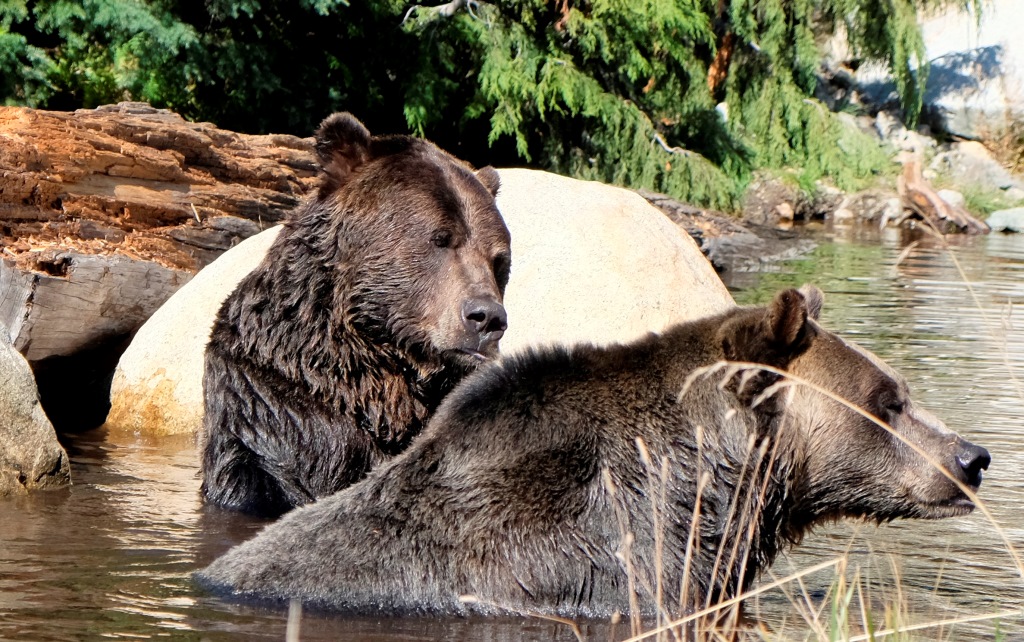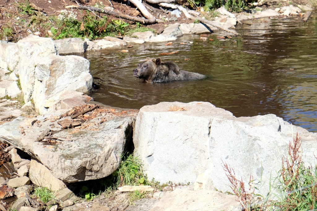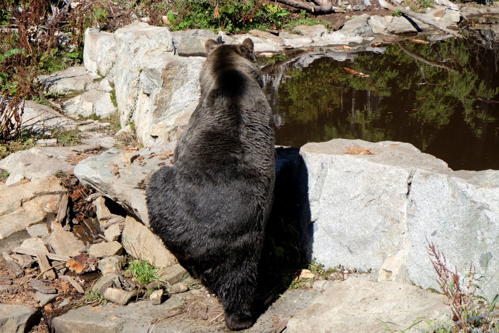 Kad tieku atpakaļ centrālajā notikumu vietā, lāči ir modušies no diendusas un plunčājas nelielos ūdens baseinos dažus metrus no sētas. Šos lāčus es statistikā, protams, neiekļauju, jo viņi nav uz brīvām kājām. Ir pavisam cita sajūta vērot lāci aiz žoga un lāci mežā. Protams, šeit var labāk, tuvāk un mierīgāk nopētīt viņa varenos nagus un zobus, lai vēl vairāk nostiprinātu cieņu pret šiem milzu pekaiņiem.