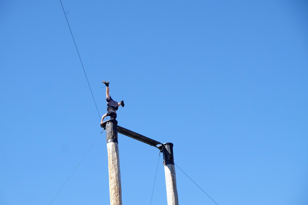 Vēl viena populāra šejienes atrakcija ir Lumberjack šovs. Divi jaunekļi sacenšas dažādās senās kokapstrādes prasmēs – tas ietver gan darbu ar instrumentiem, gan cenšanos noturēties kājās uz baļķa ūdenī, gan kokā uzkāpšanu. Lai ar virvju un kājas āķu palīdzību tiktu augšā un lejā vertikālā koka stabā bez zariem, kas ir aptuveni 10 metrus augsts, puišiem nepieciešamas vien kādas desmit sekundes, ļoti iespaidīgs skats. Šova noslēgumā kāds kaskadieris demonstrē visādus brīnumus staba galiņā, tai skaitā, stāv uz galvas. Man izskatās, ka viņš to dara bez drošinājuma.