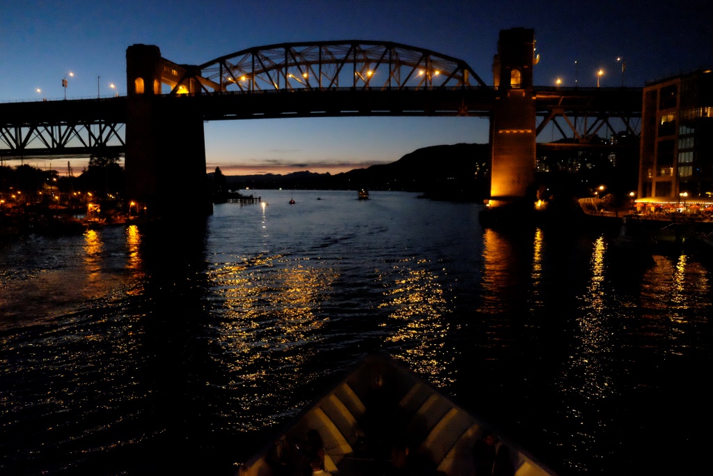 Visi transporti nāk kā uz pasūtījumu un nonāku Edgara dzīvesvietā ar pavisam nelielu novēlošanos. Drusku uzcērtamies un kātojam centra virzienā. Es faktiski pārvietojos teciņiem, lai tiktu līdzi Edgara garajām kājām, tāpēc esmu priecīga, kad nonākam galā. Kad visi sapulcējušies, kāpjam uz kuģa. Tas ir neliels, trīsstāvīgs braucamais. Sākam ar uzēšanu, bet, kolīdz kuģis attauvojas, uz brīdi nošķiros no pārējiem un atrodu klusu stūrīti kuģa priekšgalā, no kura vērot naksnīgo Vankūveru. Kuģis gan man uzdzen Antarktīdas atmiņas, ilgojos pēc aukstākas un klusākas vietas. Šeit tāda nespīd, tāpēc vienā brīdī metu pie malas iedzimto kautrību un pievienojos sienāžiem uz augšējā klāja. Jautrība uz kuģa ilgst stundas četras, pēc tam vakars turpinās kādā no naktsklubiem, kur var iepazīt Vankūveras gaišās un tumšās puses. Pēc šī vakara Edgars man asociēsies ar šo jancīgo skaņdarbu, kura piedziedājumu ir apguvuši arī angliski runājošie draugi.