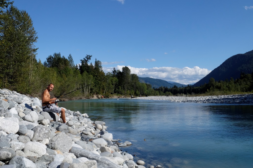 No rīta Edgars veselības atgūšanai pagatavo vitamīnu bumbu – sablenderē visādus augļus un citus labumus. Drīz klāt ir Dainis, vēl viens šejienes latvietis, un mēs laižam makšķerēt. Dainis Kanādā ir ieprecējies un izveidojis savu celtniecības biznesu, kā viņš apgalvo, smags darbs šeit atmaksājas. Strādā viņi visi te kā dulli – cik esmu runājusi ar ļaudīm, lielākā daļa sevi raksturo kā darbaholiķus.
