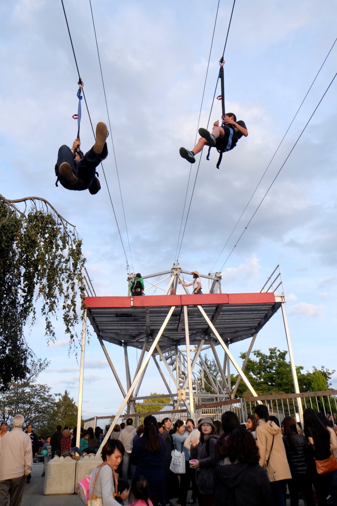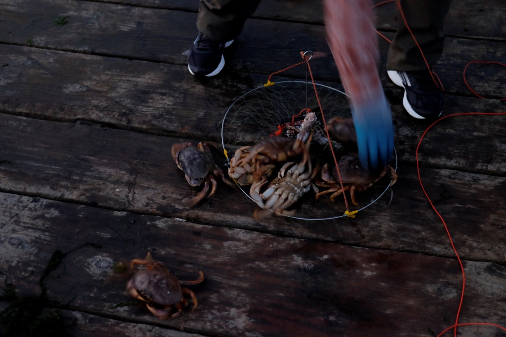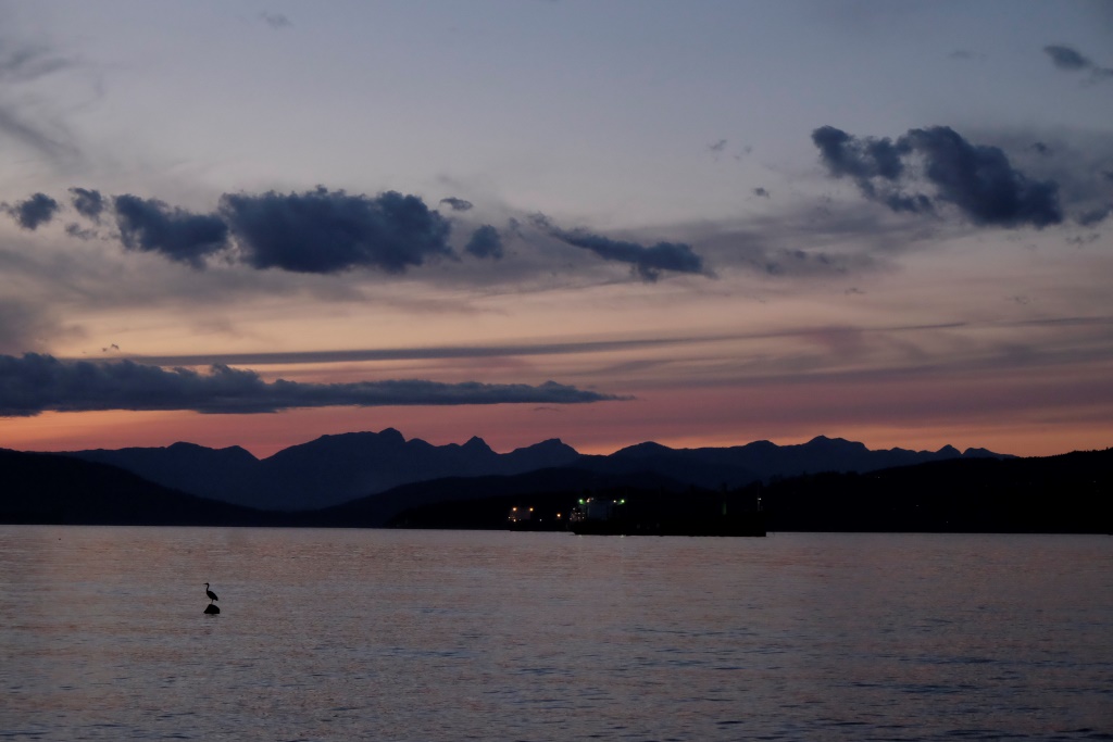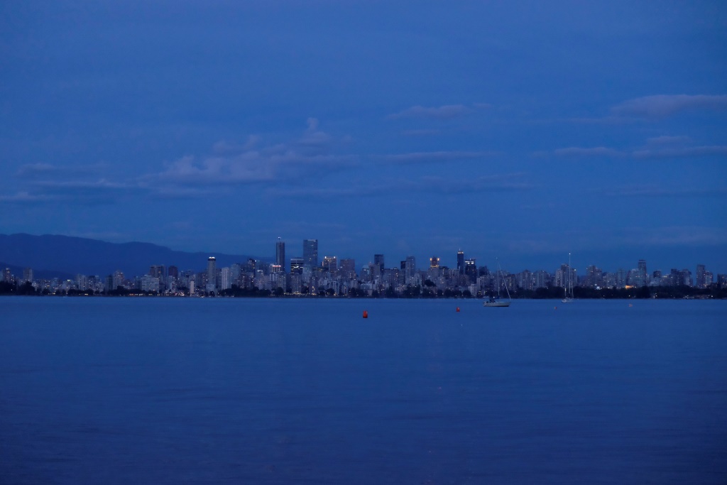 Atpakaļceļā vēl apskatām vienu no Daiņa realizētajiem celtniecības objektiem, tad viņš mūs izlaiž pie mājas un dodas uz savējām. Kamēr ir gaišs, Edgars mani vēl pavizina pa apkaimi, lai redzu Vankūveras vietas, kuras neesmu paspējusi izstaigāt kājām. Iespaidīgākais ir Queen Elizabeth parks, tādus puķu un zaļumu kalnus sen neesmu skatījusi. Arī skats uz tumst sākušo pilsētu ir gana jauks. Vēl labāks tas ir no pludmales mola – visa pilsēta kā uz delnas. Mola galā aziātu vīri un sievas ķer krabjus. Teju visi gan nonāk atpakaļ okeānā, jo nav sasnieguši vajadzīgo izmēru. Sodi par mazāku eksemplāru ķeršanu esot pietiekami bargi.