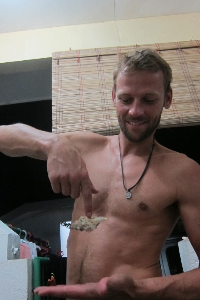 Vēl brīdi papļāpājam par dzīvi, tad es dodos pie miera – rīt gribu piecelties tā paagrāk. Dīvainā kārtā tas izdodas – esmu augšā pirms astoņiem. Sāku ar pastaigu līdz okeānam un rīta snorkelēšanu. Tālumā darbojas divi nirēji, jauki, nebūšu pavisam viena. Tieku līdz dziļumam un atkal veros zemūdens pasakā. Kad esmu piepeldējusi tuvāk “nirējiem”, tās izrādās ūdenī peldošas kastes – bojas vai zvejas rīki. Tātad, tomēr esmu viena. Peldot virs koraļļiem nav tik bailīgi, bet, kad zem tevis paveras okeāna dzīles, kurām galu vairs nevar saskatīt, ir tā kā ir. Nu vairs nezinu, vai maz gribētos pēkšņi blakus ieraudzīt peldam bruņurupuci vai kādu citu lielu nezvēru, man šķiet, ka no pārsteiguma aizrītos. Apkārt parādījusies dīvaina, viegli skrapstoša skaņa, bet ik pa laikam ķermenis piedzīvo tādu kā viegli durstīgu sajūtu, nevar saprast, kāpēc. Tad pēkšņi ieraugu pavisam blakus medūzu želeju. Manām smadzenēm izskrien cauri signāls: “medūzas = var būt briesmas” un jau nākamajā brīdī esmu aizrijusies – mute ir sāļā ūdens pilna. Sprauslādama izbāžu galvu un izspļauju sāļo ūdeni. Labi, labi – jau peldu krasta virzienā.