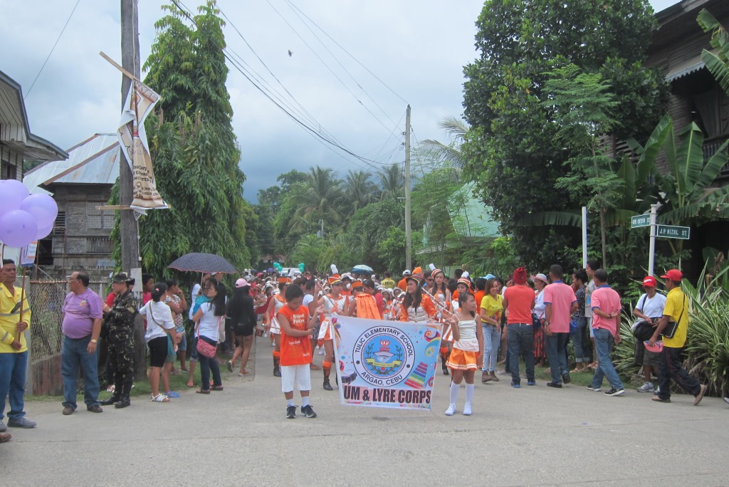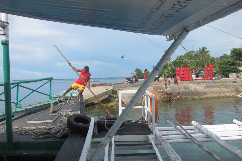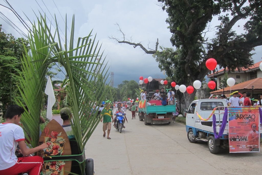 Izkāpjot Argao, dodos meklēt ostu. Eju ūdens virzienā, bet iesākumā nonāku svētku vidū – sapucēti bērni nepacietībā mīņājas, gaidot parādes sākumu. Nesaprotu, kāpēc sešgadīgas meitenes ir tā jāpārkrāso, bet citādi izskatās labi. Ūdens malā apvaicājos garāmgājējiem, kur ir piestātne, viņi apgalvo, ka tas esot 10 km ārpus pilsētas. Labi, pa ceļam redzēju tūrisma biroju, uzdošu šo pašu jautājumu tur. Turienes darbiniece man paziņo vēl bēdīgākus jaunumus – šodien diemžēl prāmji vairs nekursējot – tie esot vien divi dienā – viens kuģojot četros no rīta, otrs 12 dienā. Tagad ir viens. Un kā tad lai es tieku uz Bohol? Jābraucot uz Cebu pilsētu. Tad kāpēc man autobusā teica, ka nākamā laiva esot divos dienā? Ak, laiva? Jā, bet tā esot tikai cilvēku transportēšanai. (Es pēc ceļamkrāna izskatos, vai?). Jā, tā esot tepat ap stūri, lai es paņemot mototaksi. Cik? 7 peso. Doh!