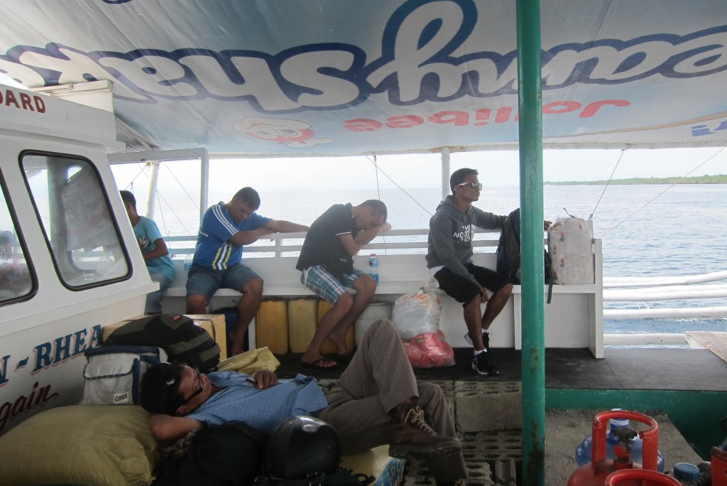 Šodien gribu pārcelties uz kaimiņu salu – Bohol. Uz to var nonākt no pretējā krastā esošas pilsētas Argao, lai tiktu līdz tai, jāizmet neliels lociņš ar autobusu. Par to galīgi nebēdājos, jo braucot ar autobusu, var labi apskatīt vietējo dzīvi. Viņi tevi parasti neredz, attiecīgi izturas pavisam dabiski. Carcar pilsētā pārsēžos citā autobusā, te esmu iespiesta starp bungām un ļaužiem ar dažnedažādiem iepirkumiem.