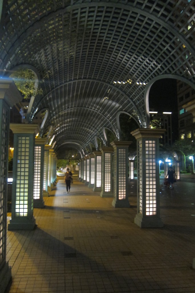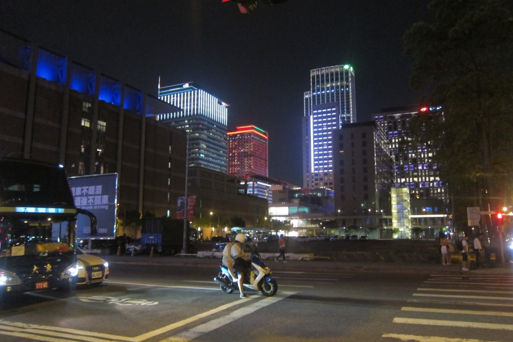 Labi, atmetu tonim ar roku un eju apskatīt pilsētu no ierastā skatu punkta. Šeit ar gaismām un modernu skatu var zīmēties ne tikai augstais tornis, ļoti daudzas ēkas izskatās kā no dizaina kataloga izkāpušas, gaismas efekti netiek žēloti. Soļoju prom no debesskrāpjiem, gribu nonākt kādā no mazajām ieliņām un ieturēt vienu maltīti taivāniešu gaumē. Drīz vien tieku līdz tādam rajonam, te jau ir daudz omulīgāk. Ieraugu kādu ēstūzi, kur, līdzīgi kā Ķīnā, var izvēlēties produktus lielā stendā, tad tie aši tiek pagatavoti. Arī šeit jūras veltes izskatās lieliski, nolemju nogaršot trīs no tām. Restorāna saimnieki ir gados un angliski nerunā, bet kāds no apmeklētājiem aši piesakās par tulku un palīgu. Vispār šīs īsas vizītes laikā, garāmgājēji man bez prasīšanas piedāvāja palīdzību reizes četras – ļoti pieklājīgi cilvēki. Stumju aiz vaiga vakariņas un pie sevis prātoju, vai man pietiks ar samainīto naudu. Kad saimniece kalkulatorā saspiež ciparus, apjēdzu, ka nepietiks vis. Hmm. Īstajā brīdī atrodas arī pazudušie 10 ASV dolāri, kopā ar taivāniešu banknotēm viss sanāk. Vienīgi stulbi, ka nāksies dēļ dažiem dolāriem grābstīties gar bankomātu, jo man nepietiek naudas autobusa biļetei atceļam.