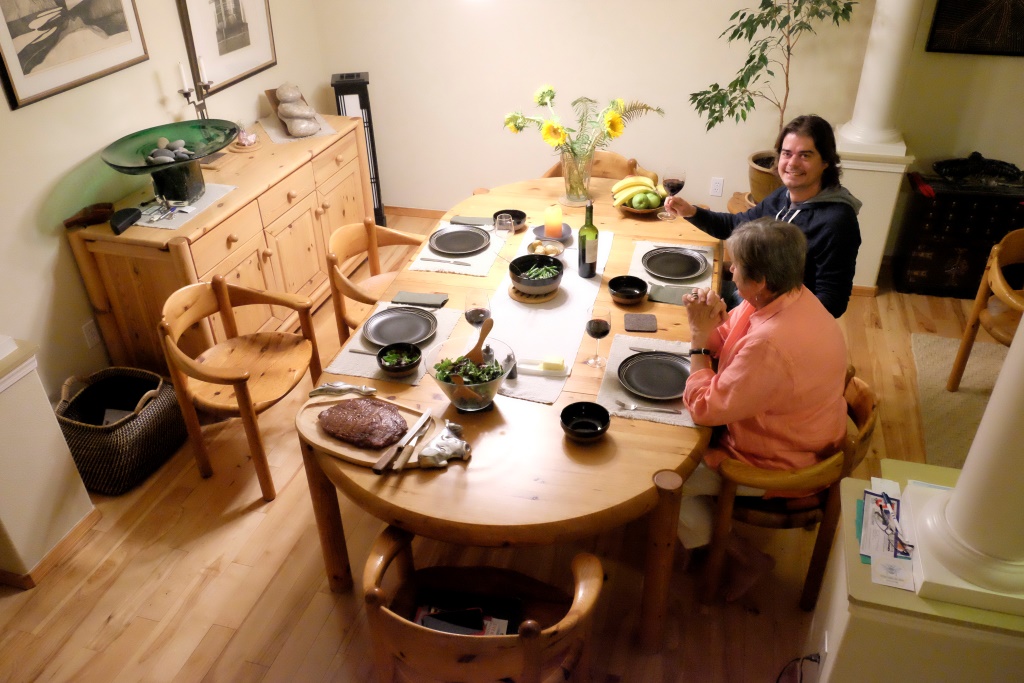 Kamēr mēs iekārtojamies, mājinieki mums uzservē pagalam smalkas vakariņas, jūtamies kā pa taisno paradīzē nonākuši. Rafaēls iegrimst diskusijā ar Ričardu par vīnu, auto un vēsturi – abi pārspriež tādas tēmu detaļas, par kurām man nav ne jausmas, ne intereses. Mans lielākais prieks, protams, ir palocīt mēli latviešu valodā, pēdējā laikā liktenis lutina ar šo iespēju. Saku Intai, ka Rafaēlam šķitīs, ka visi latvieši ir tik forši, jo viņam pēdējā laikā ir iznācis sastapt vairākus, un katru reizi tikšanās bijusi bezgala interesanta.