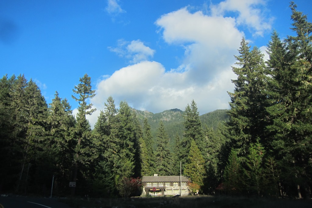 Daba top aizvien krāšņāka, bet, kad šķērsojam nacionālā parka robežu, esam pavisam iespaidoti. Tikko būvēts ceļš iet tieši gar milzīgiem koka stumbriem, veco egļu zaru ķeburainumu pastiprina ķērpji, piešķirot mežam maģisku noskaņu. Šķiet, egļu zaros satupuši simtiem neredzamu rūķīšu, kuru vienīgā redzamā daļa ir garās bārdas. Ik pa liekam no meža aizsega iznirst sniega klātais Rainier kalns.