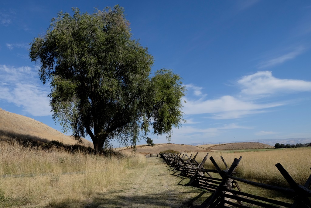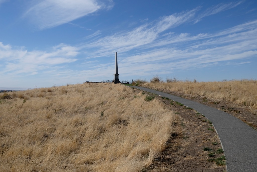 Atvadāmies no rīta saules pielietā Rainier parka un dodamies uz austrumiem, mums rīt jānonāk Spokane pilsētā. Visai drīz krāšņais mežs beidzas un tā vietā nāk garlaicīgi, sausas zāles klāti līdzenumi un kalni. Šķiet neticami, ka ainava var tik krasi izmainīties. Tā nu mēs vairākas stundas stūrējam pa lielceļu, līdz ieraugām norādi uz nacionālas nozīmes vēsturisku vietu. “Mazliet kultūras šodienai neskādēs”, nosaka Rafaēls un mēs nogriežamies aplūkot objektu.