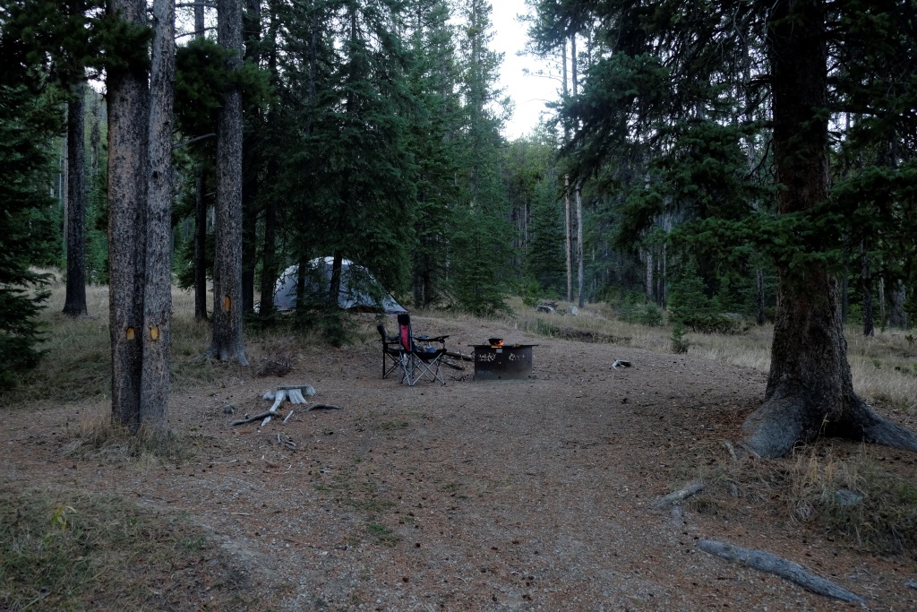 Pirmo izbrāķējam kā pārāk tuvu ceļam esošu, bet nākamais kempings ir gana labs. Šajā sezonā jārēķinās, ka daudzi kempingi nepiedāvā neko vairāk kā teltsvietu un sauso tualeti. Ūdens pumpji jau ir demontēti, par dzeramā krājumiem jāpadomā iepriekš. Tā kā mums kopumā ir trauki aptuveni 30 litriem, esam nodrošinājušies – ūdens pietiek gan dzeršanai, gan ēst gatavošanai, gan trauku mazgāšanai.