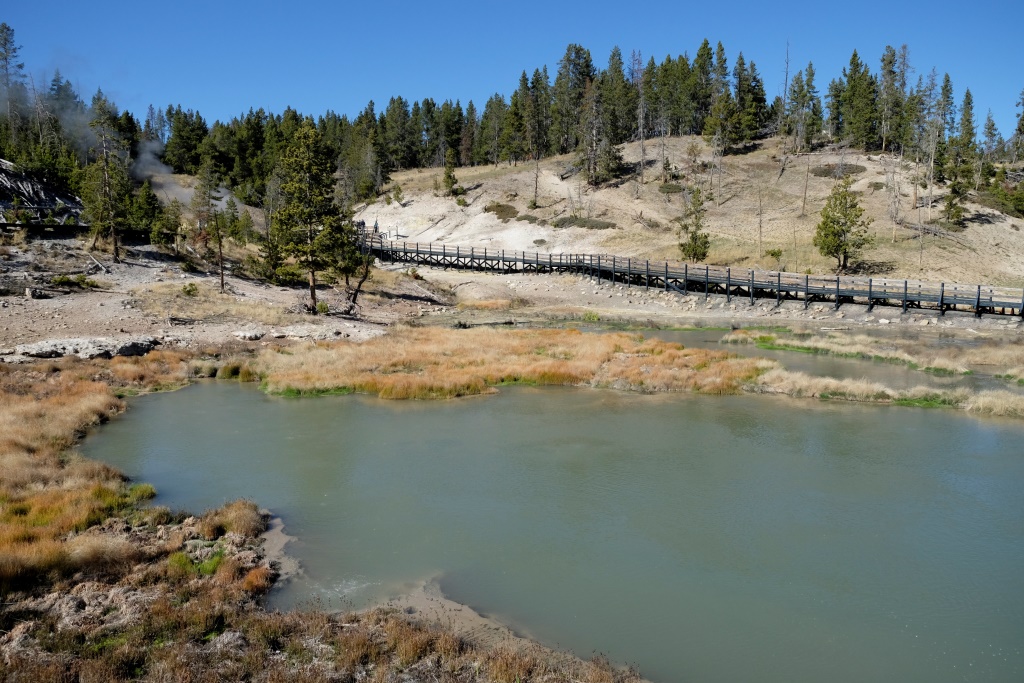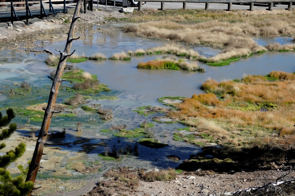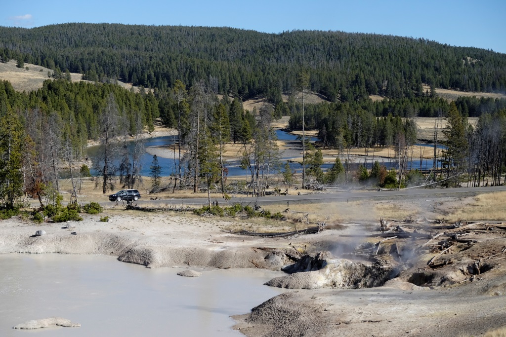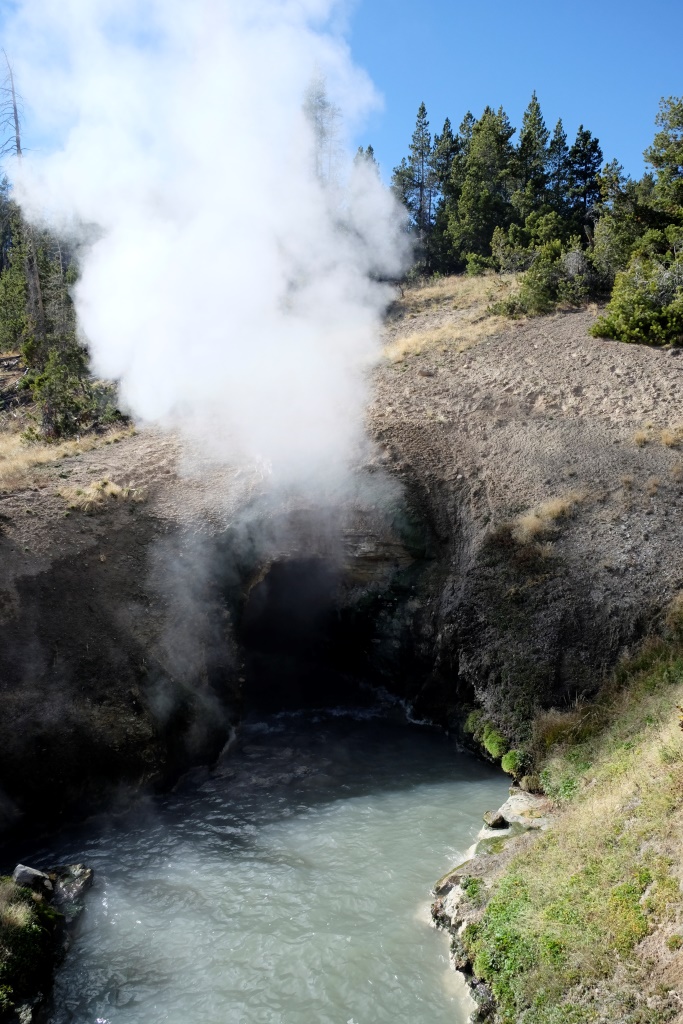 Atstājam teltis turpat un pēc brokastīm laižam parka apskates tūrē. Sākam ar iespaidīga kanjona aplūkošanu no abām upes pusēm, tad piestājam pie geizeriem. Lielākā daļa Yellowstone nacionālā parka atrodas milzīga vulkāna krāterī. Varu tikai iztēloties, kas šeit notiek zem zemes, jo daudzās vietās laužas ārā pazemes dzīvība – vārās dubļu vannas, kūp sēra avoti, šaudās geizeri. Runā, ka šī vieta uzies gaisā, tik neviens īsti nezin, kad.