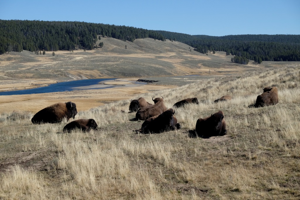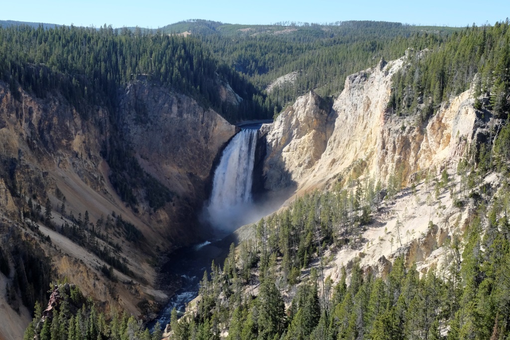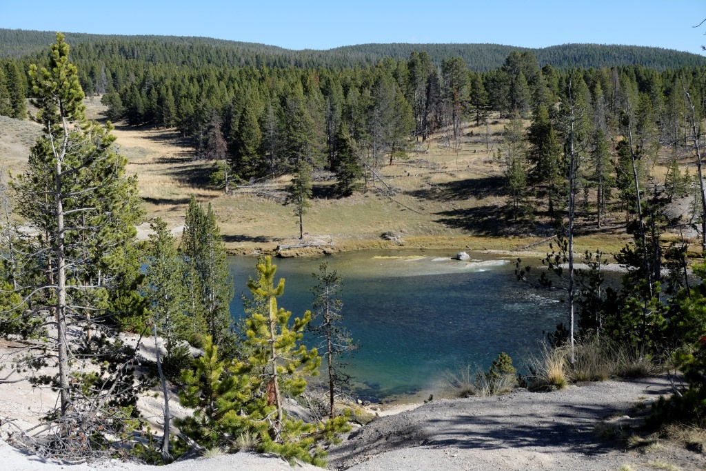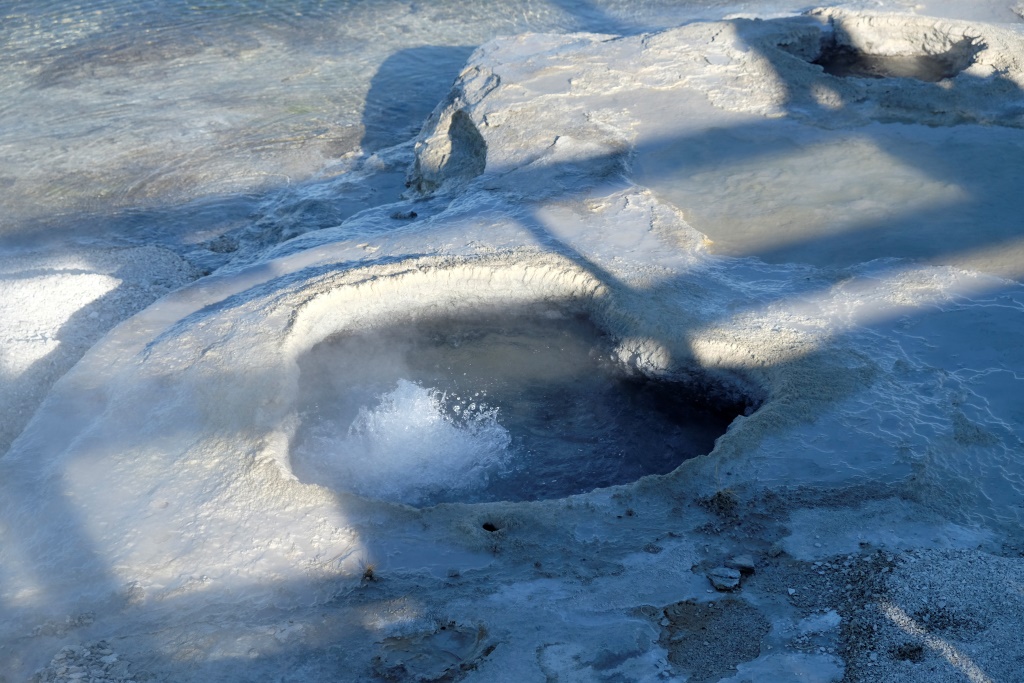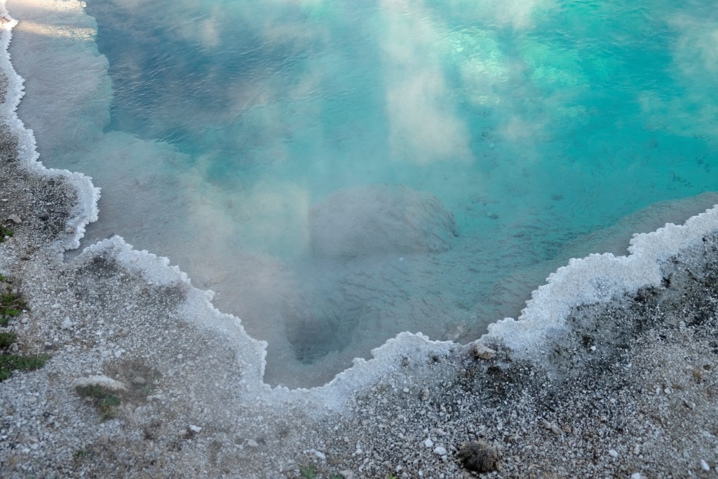 Atstājam teltis turpat un pēc brokastīm laižam parka apskates tūrē. Sākam ar iespaidīga kanjona aplūkošanu no abām upes pusēm, tad piestājam pie geizeriem. Lielākā daļa Yellowstone nacionālā parka atrodas milzīga vulkāna krāterī. Varu tikai iztēloties, kas šeit notiek zem zemes, jo daudzās vietās laužas ārā pazemes dzīvība – vārās dubļu vannas, kūp sēra avoti, šaudās geizeri. Runā, ka šī vieta uzies gaisā, tik neviens īsti nezin, kad.