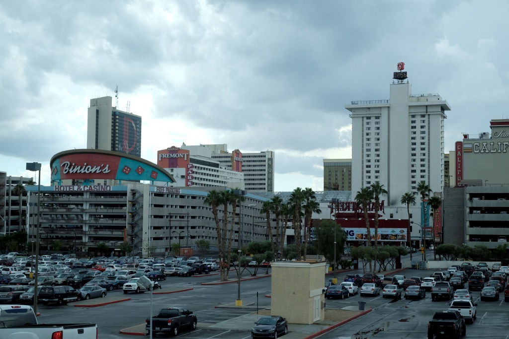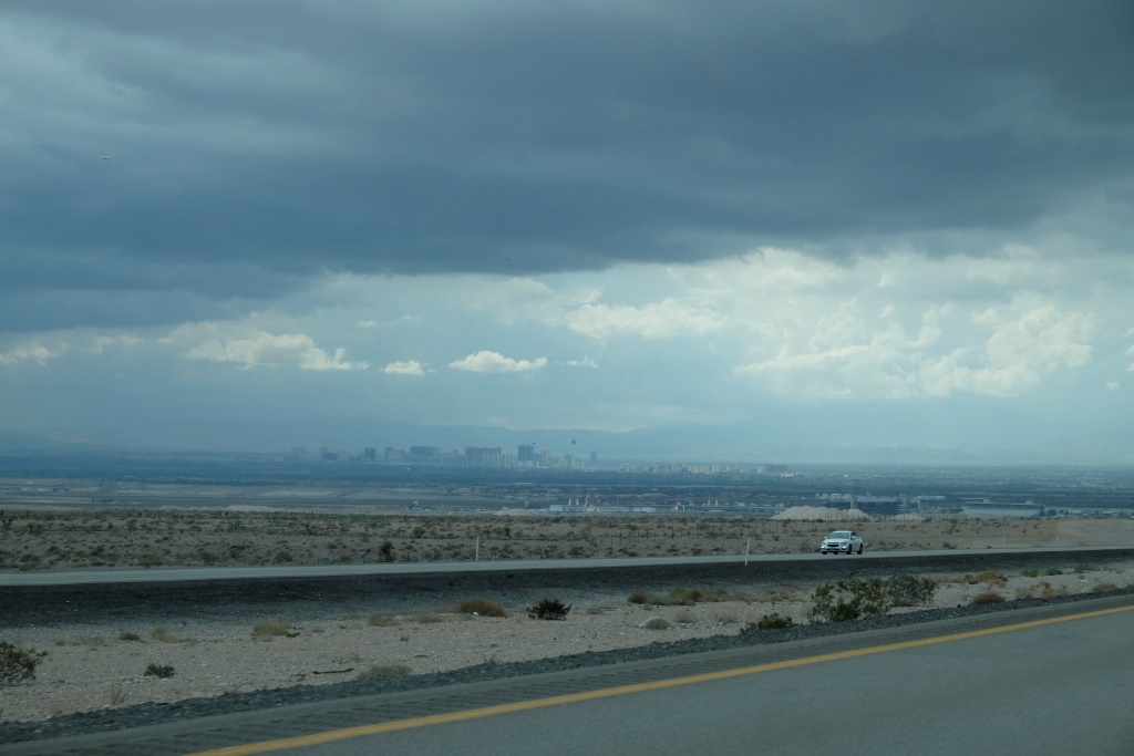 Pa ātrgaitas šoseju jūdzes pazūd nemanot un drīz jau kā mirāža tuksneša vidū izpeld Lasvegasa. Vēl brīdis paiet kamēr pa daudzajiem viaduktiem atrodam pareizo nobrauktuvi, tad vēl gabaliņš pa pašu pilsētu un klāt esam. Iekārtojamies viesnīcā, kas nav nekāda glaunā, bet visi komforta momenti ir ietverti: duša, divas lielas gultas, internets. Es gribu lēnā garā atvilkt elpu no ceļa, bet Rafaēls dīdās – ejam, ejam, Seržs jau gaida. Tad nu ieskrienam ašā dušā, uzmetam pilsētas drēbes un laižam ielās.