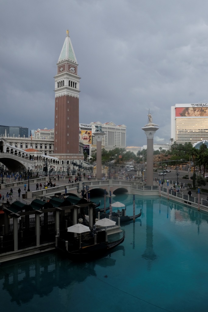 Atkal ar ziņkārību vēroju sevi. Pirms trim gadiem man Lasvegasa ne visai patika, lai neteiktu, ka nepatika. Gan turpceļā, gan atpakaļceļā maldījos pa viaduktiem, arī pati centra apskate nekādu dižo prieku nenesa – jutos kā knislis šajā spožumā. Šī tomēr ir vieta, kur ir forši būt kompānijā ar pazīstamiem ļautiņiem. Tā kā šoreiz man ir kompānija, tad arī tie visi uguņi tik dikti nemulsina, drīzāk joprojām pārsteidz pats fakts – nu kā nekurienes vidū var rasties šitāds jampadracis!