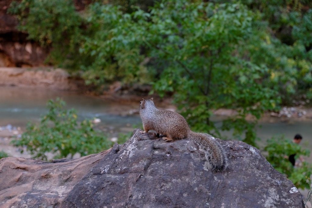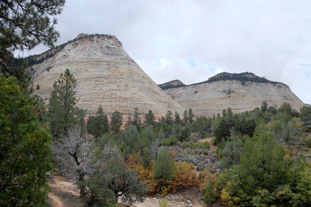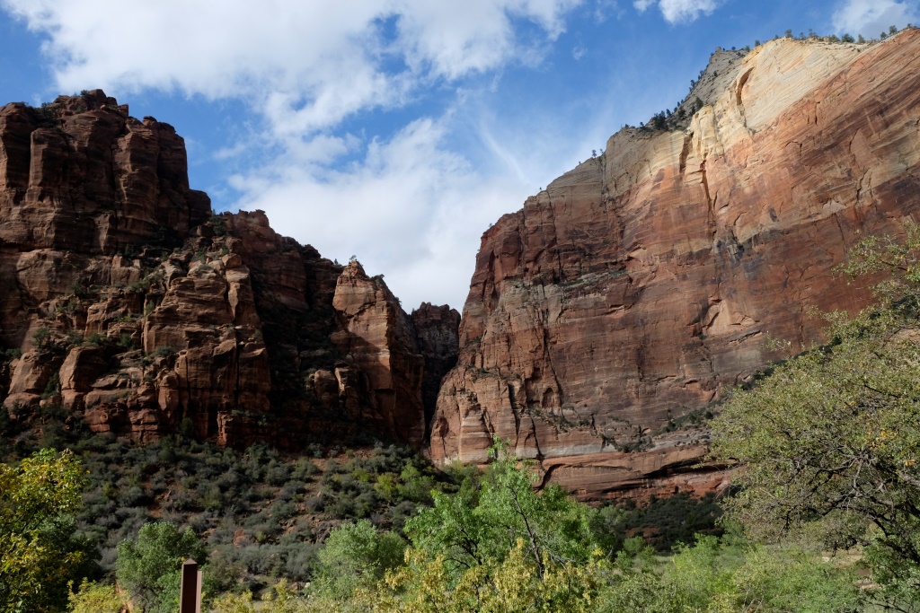 Saku Rafaēlam, ka toreiz bija stipri vēsāks, arī koki bija dzeltenāki, laikam šogad šeit ir vēlāks rudens. Rafaēls, savukārt, izsaka šaubas, vai tik es neesmu šeit viesojusies drusku citā laikā. Man ir sajūta, ka biju tieši ap šo pašu laiku, tomēr datumus neatceros. Pag, to taču var noskaidrot, man piepeši pielec. Atveru veco datoru, sameklēju iepriekšējā ASV ceļojuma fotogrāfijas un atveru bildes datus. Datums, kas redzams tur, ir tieši tāds pats, kā datora labajā apakšējā stūrītī. Pavisam jauši esmu nonākusi Zion precīzi pēc trim gadiem – 17. oktobrī. Jau sen gaidīju, kad varēšu veltīt dienu Dacei Smilgai, bet jaušības, kā par spīti, vairījās no manis. Nospriežu, ka šī skaitās jaušība un zinu arī, ka Dacei patīk ASV nacionālie parki, tāpēc – diena Tev! Un paldies lielais par to!