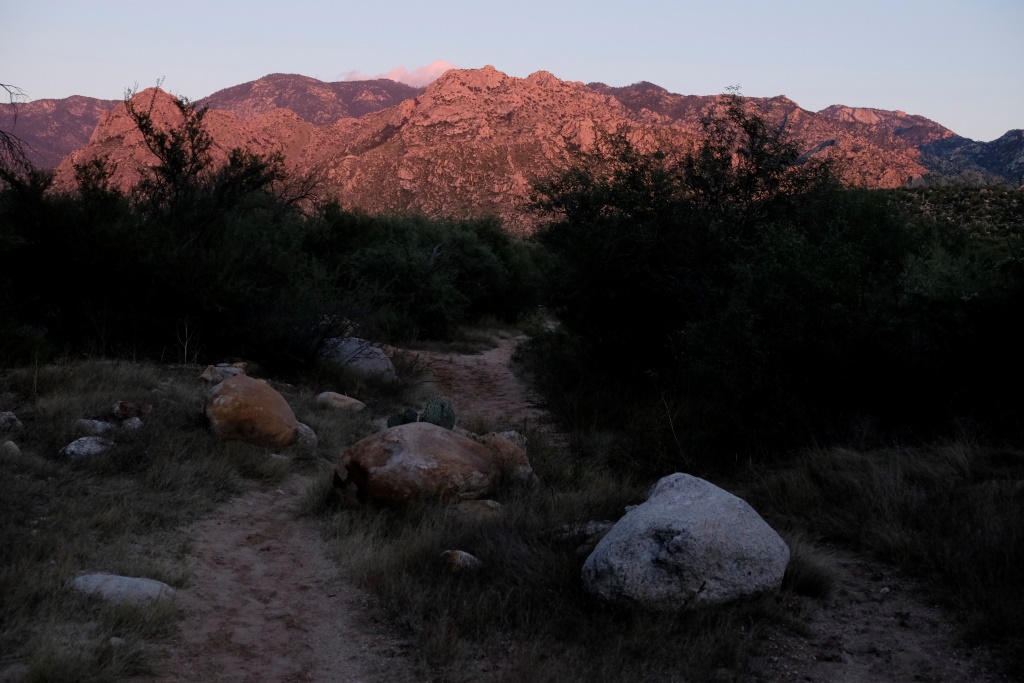 Štata parks ir burvīgs – palikšana maksā 15 USD un par šo naudu pieejamas visas kempinga ērtības: teltsvieta, ugunskura vieta ar visu malku un svaigi remontētas dušas, par kurām nav jāmaksā papildus. Kad esam iekārtojušies, es vēl izmetu mazu vakara pastaigas lociņu, lai palūkotos uz kaktusiem, kuru arī šeit netrūkst, vakara gaismā.