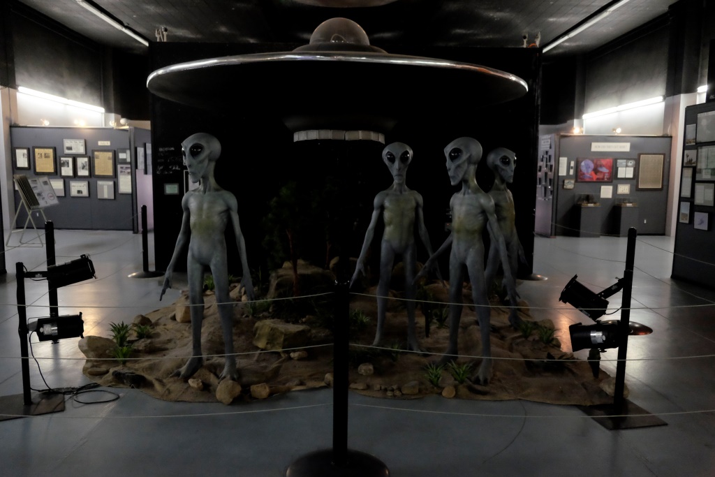 Vakara pusē braucam cauri Roswell pilsētai, kas pazīstama kā ASV NLO galvaspilsēta. Slavenākais ir 1947. gada 4. jūlijā notikušais Rosvelas incidents, kad Fosteru rančo nogāzies lidojošais šķīvītis. Stāsta morāle ir tāda, ka citplanētiešu ķermeņi nogādāti dažādos virzienos izpētei, bet kosmosa kuģis aizvietots ar laika novēršanas ierīci, sauvkārt, notikuma aculiecinieki drīz vien mīklainos apstākļos miruši. Vairākas sienas muzejā veltītas šī notikuma gaitas atspoguļošanai, citas vēsta par fotoliecībām un aculiecieku stāstiem. Vilks viņu zina, kur patiesība, kur nē, katrā ziņā šis muzejs mūs ne visai pārliecina. Izbraucot no Roswell, piestāju pie vietējā Makdonalda un tur paziņoju, lai man iedot paēst pa 3,14 USD, kas ir Kārļa Šteinberga veltītā pusdienu nauda – nure, sanāk maziņš siera burgerītis un frī kartupeļi. Paldies!